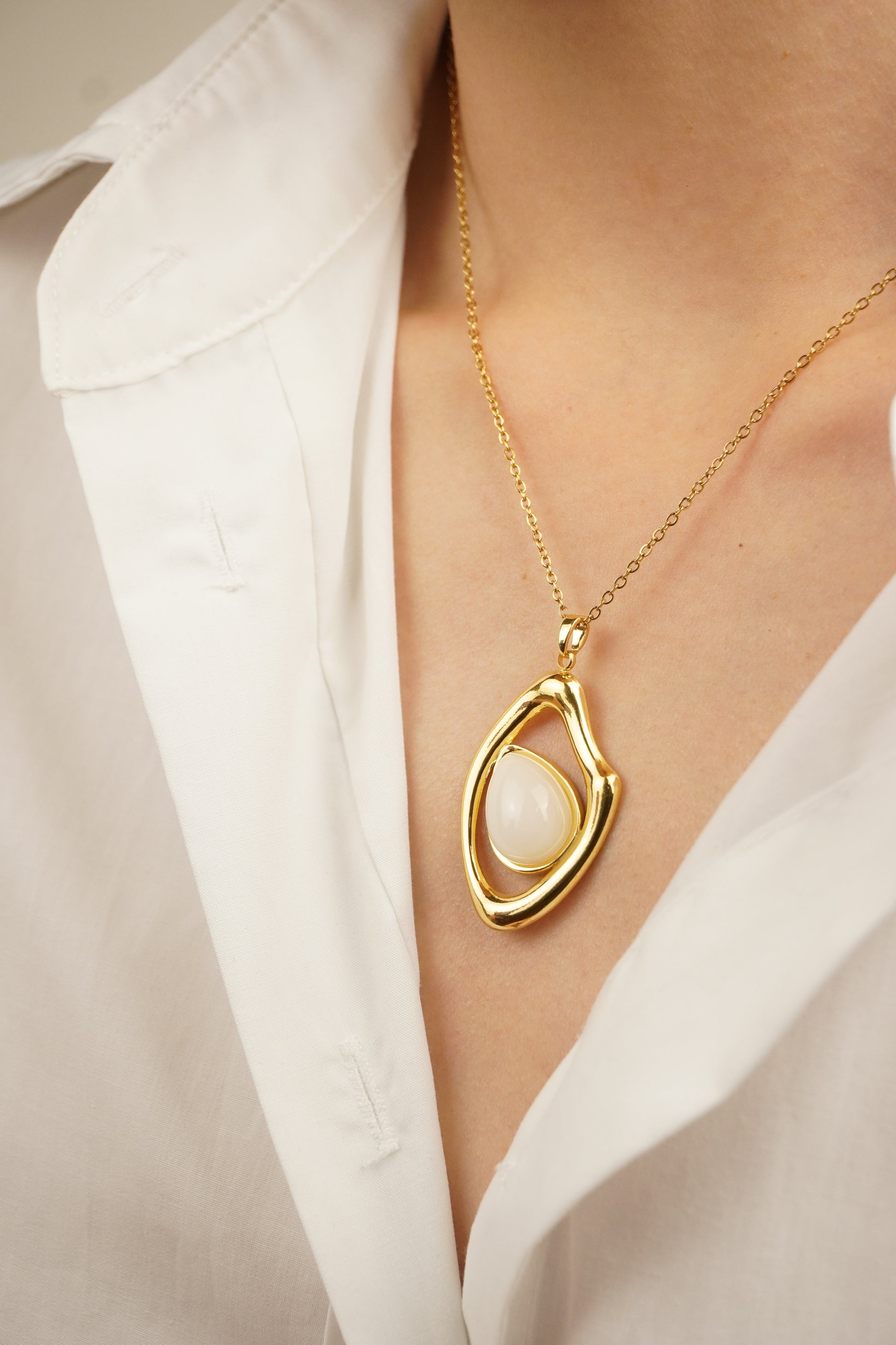 Asymmetrical White Pendant Necklace