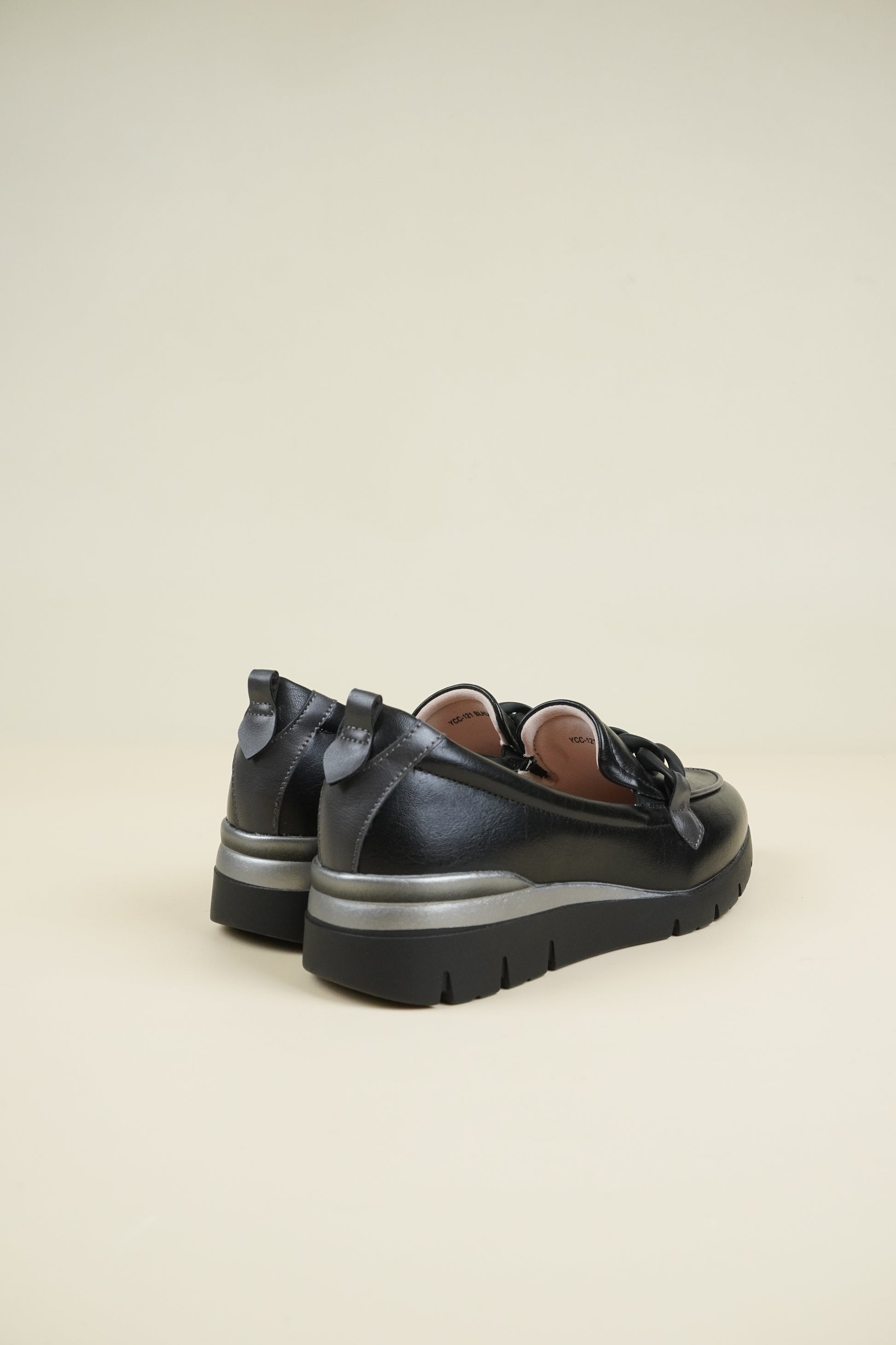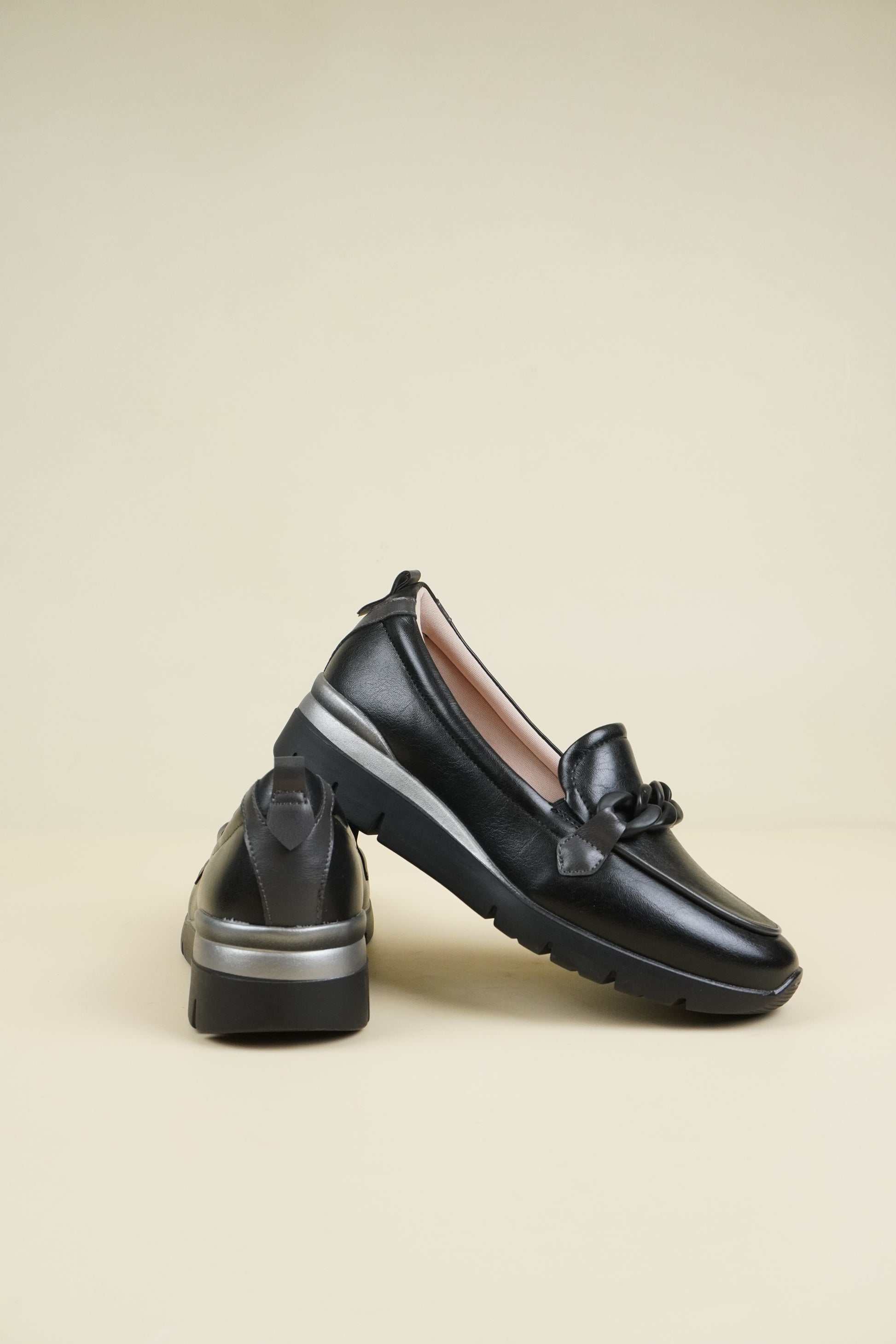 Ladies' loafers with 4 cm* wedge heels, and the soft sole to makes them extra comfortable.