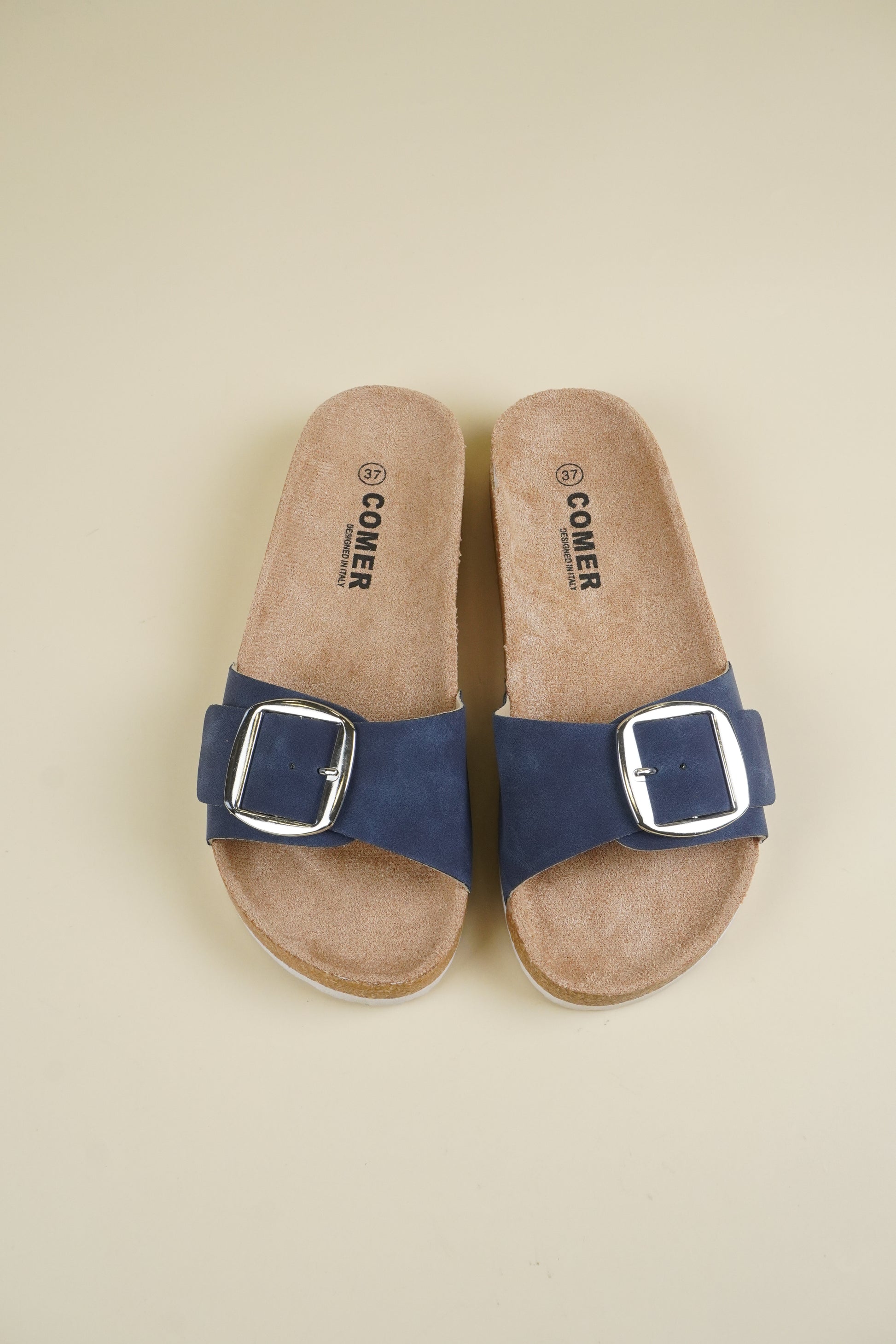 Single-Buckle Slippers - Blue