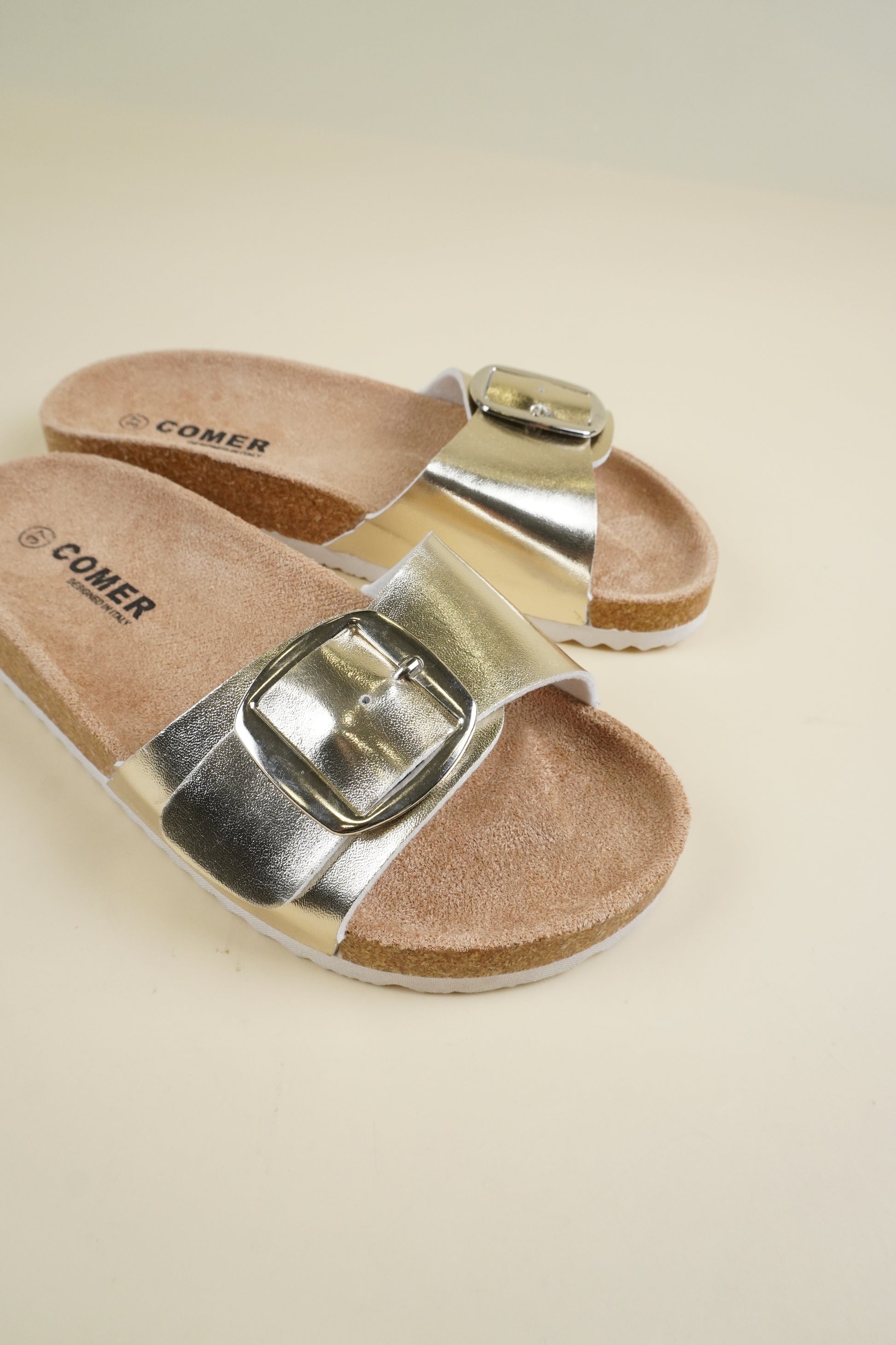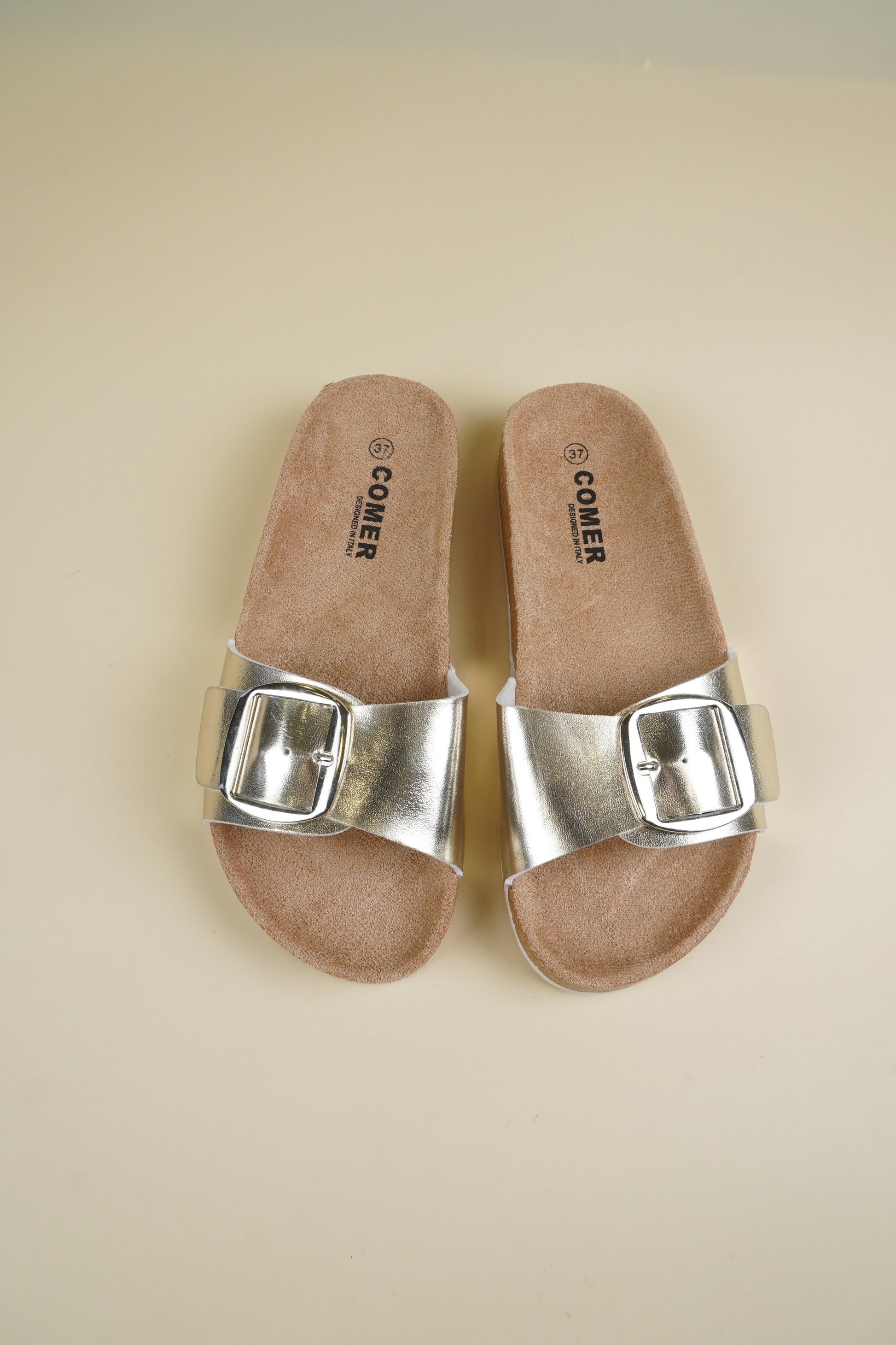 Single-Buckle Slippers - Gold
