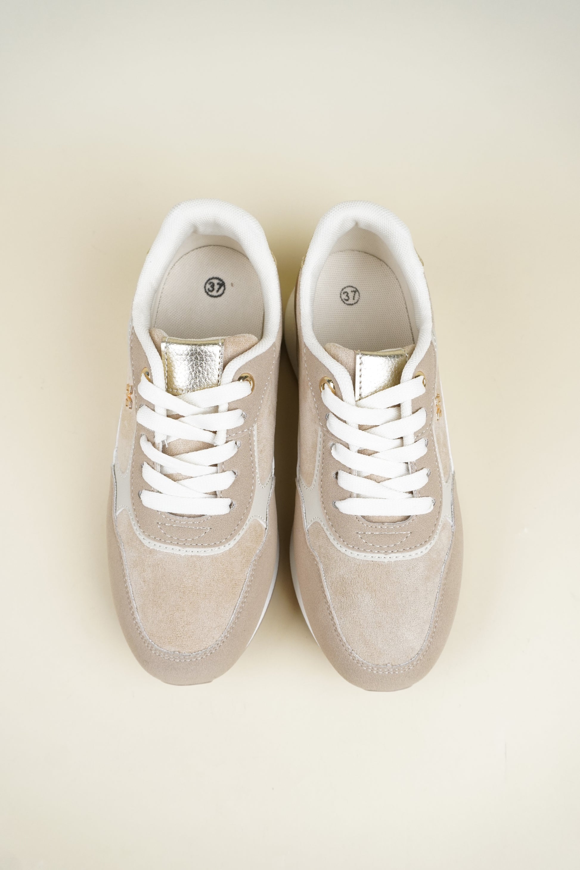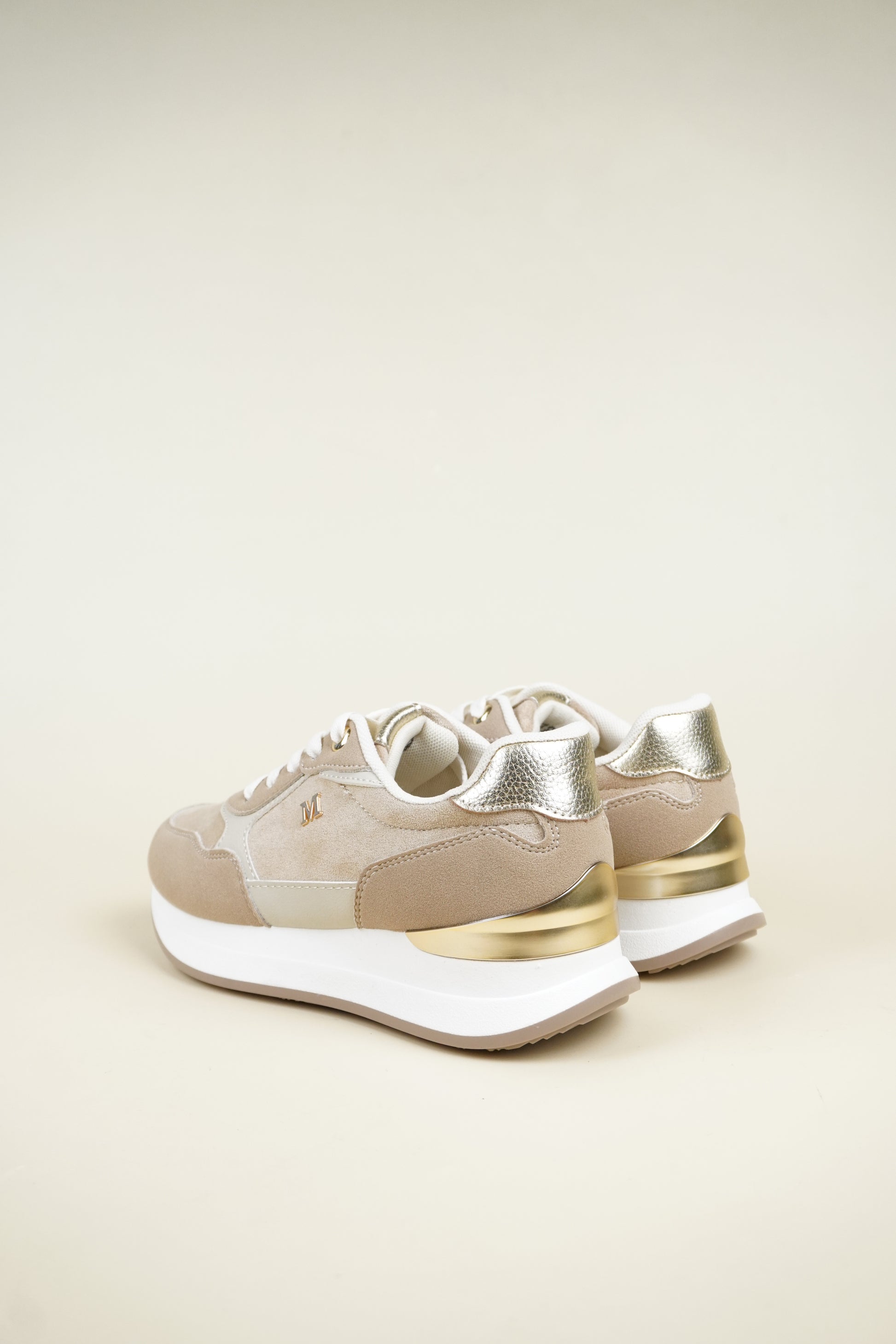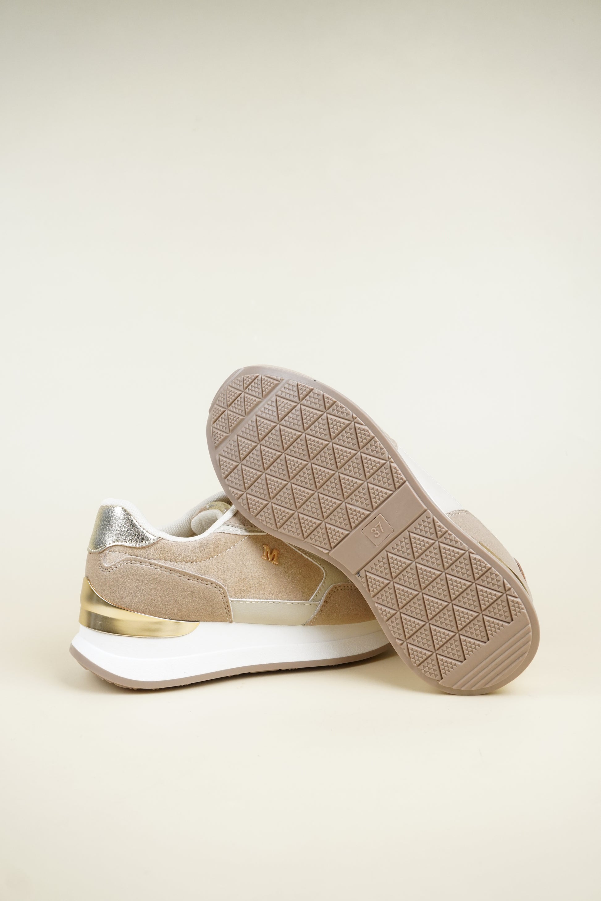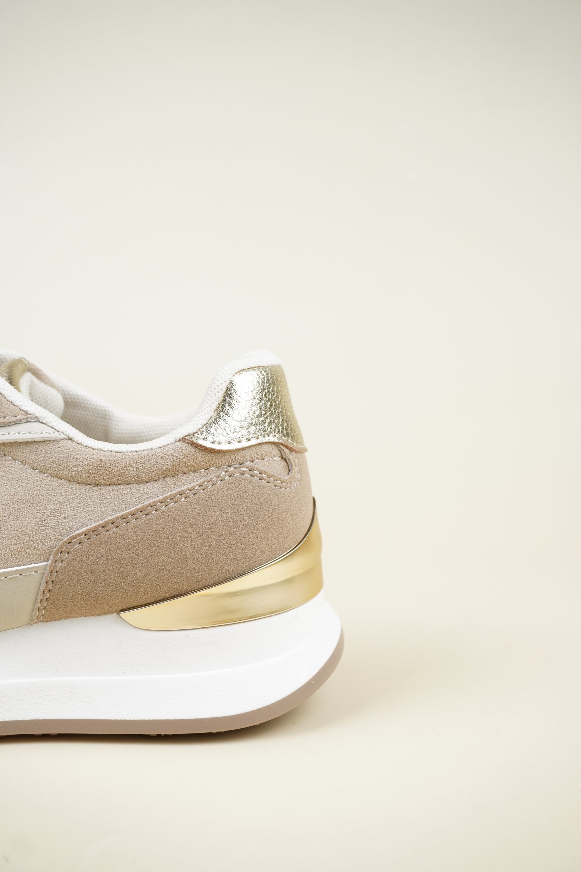 Women's sneakers with gold accent and deisgned heels, ideal for everyday wear.
