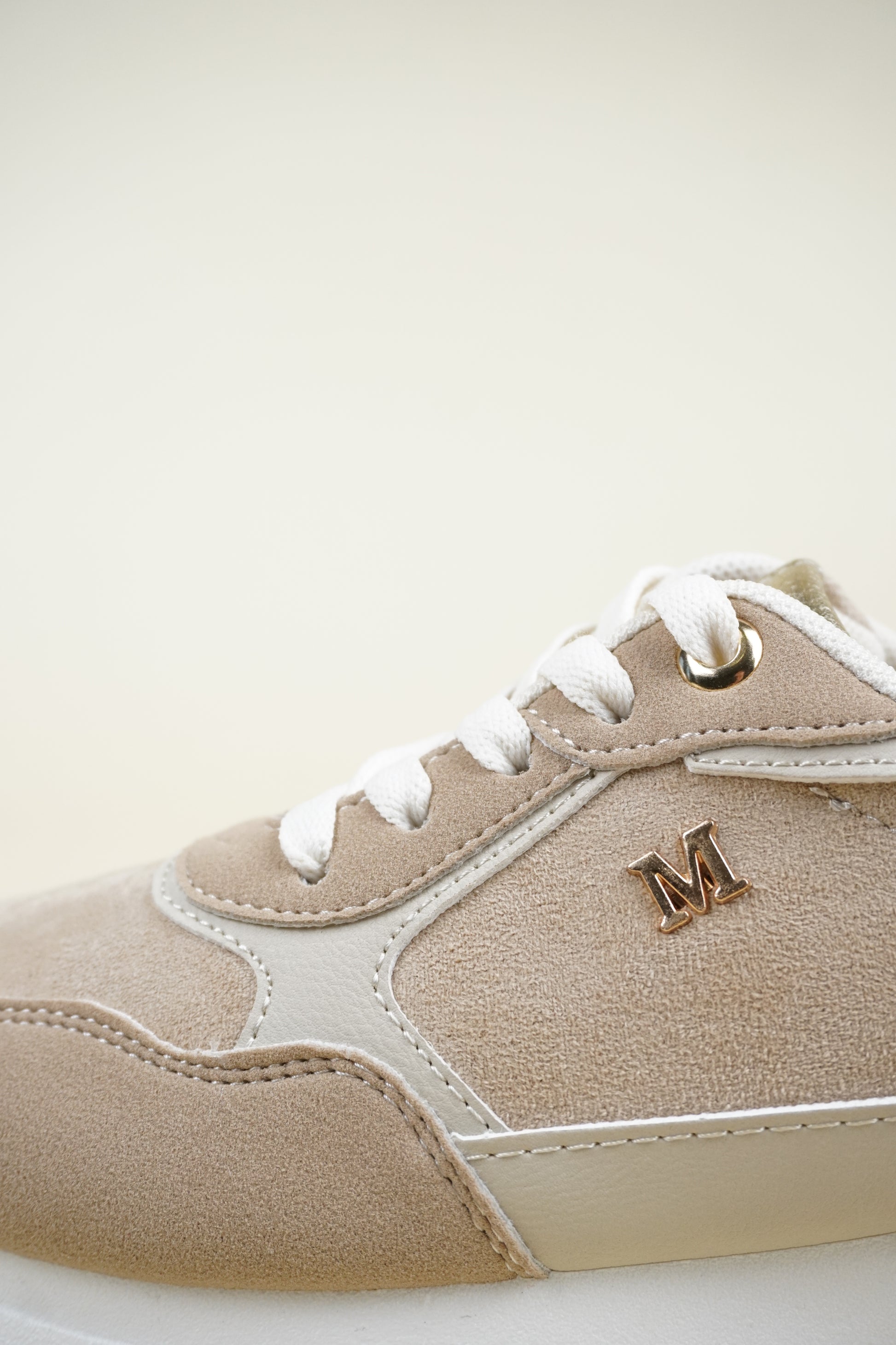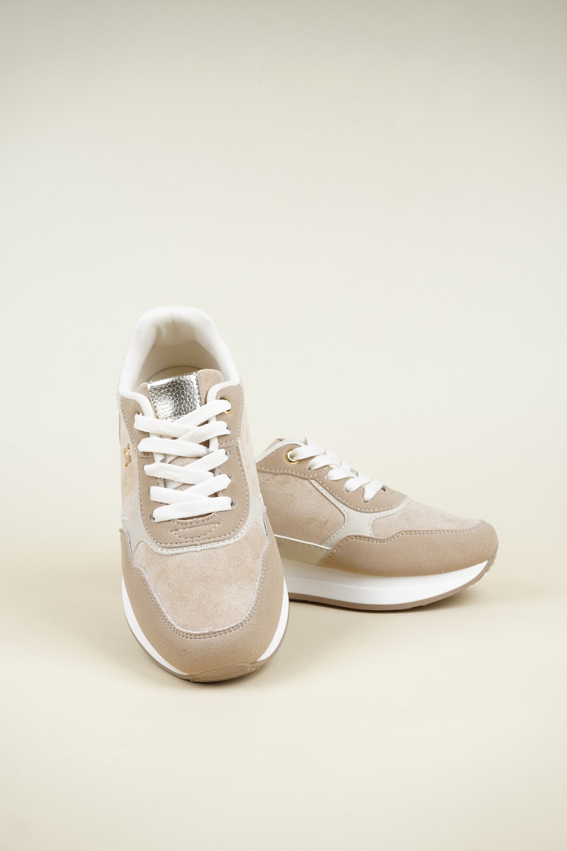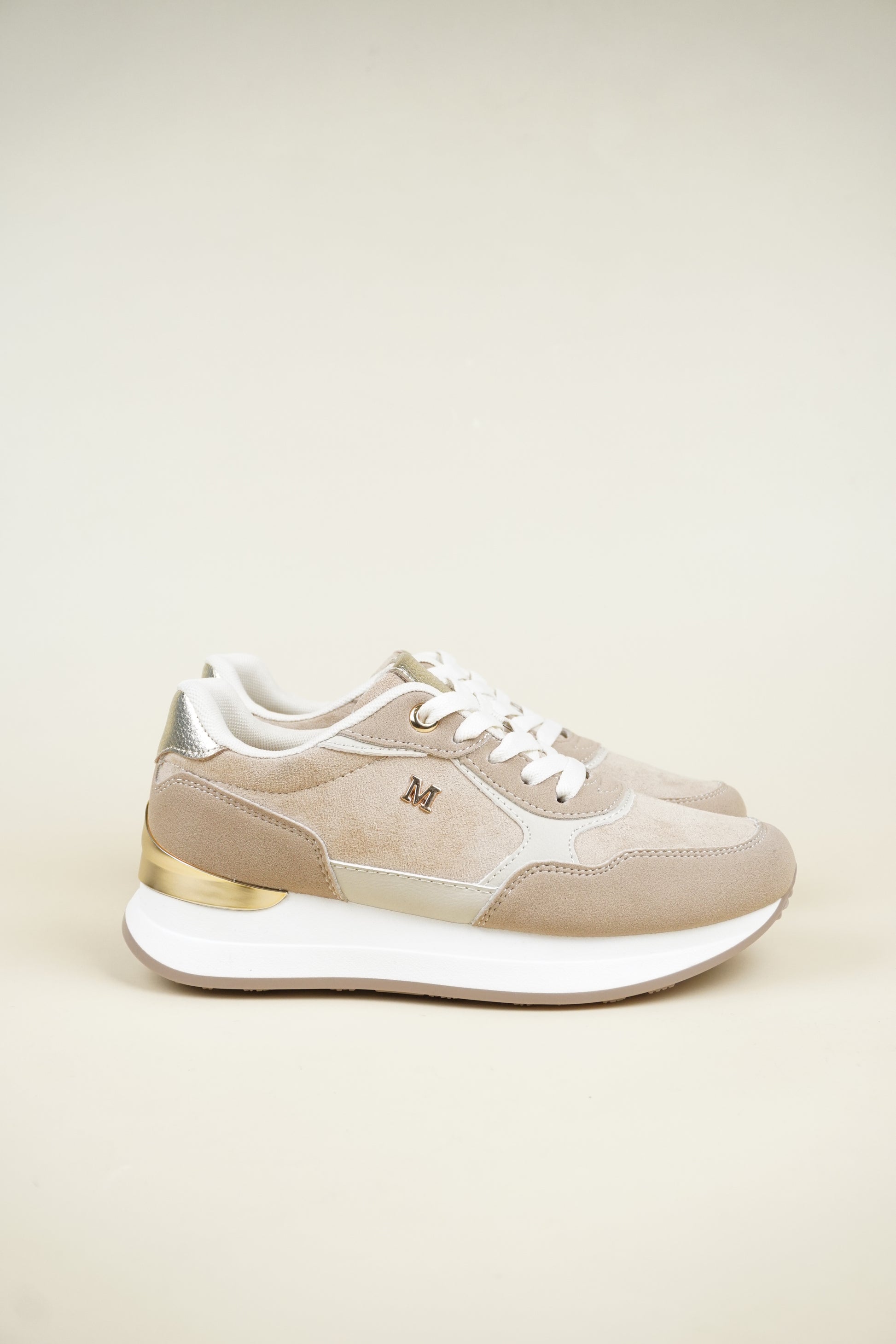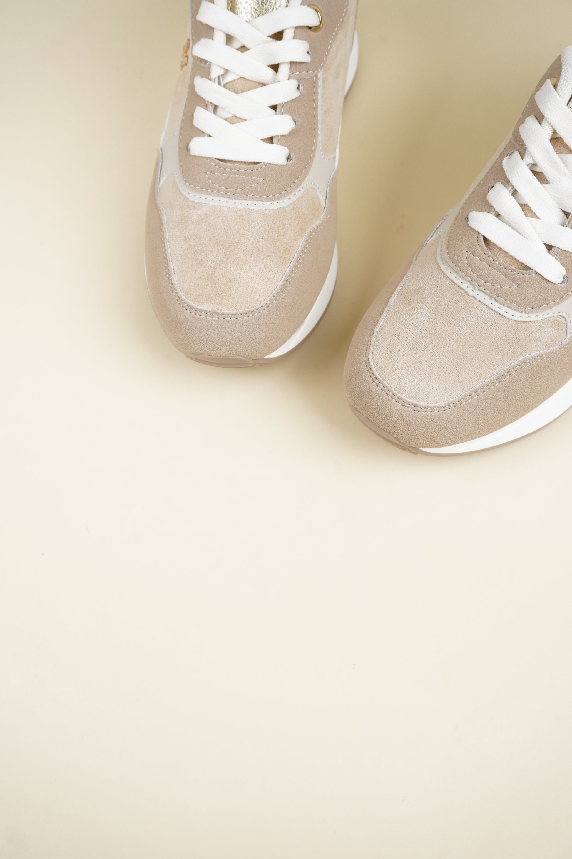 Women's sneakers with gold accent and deisgned heels, ideal for everyday wear.