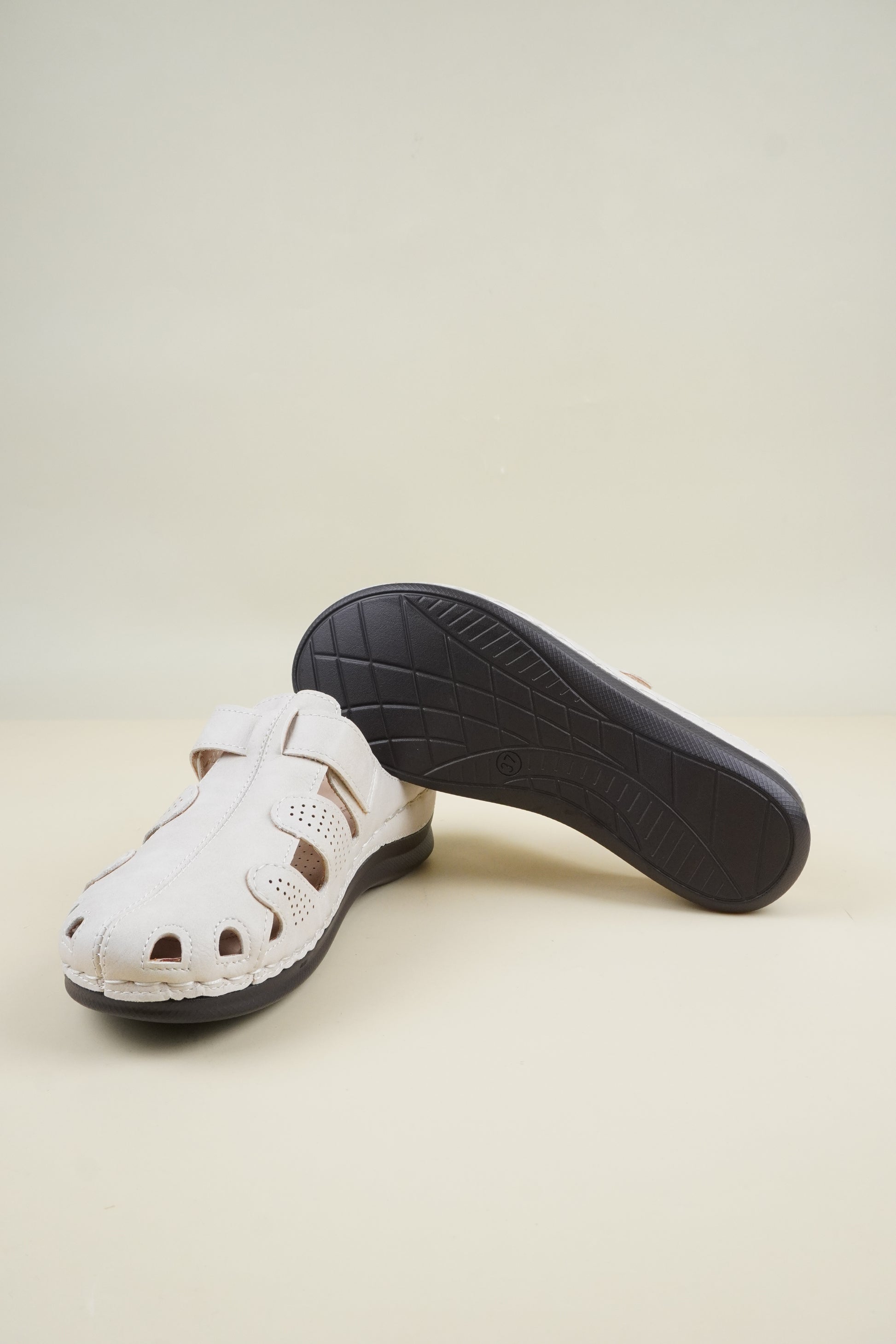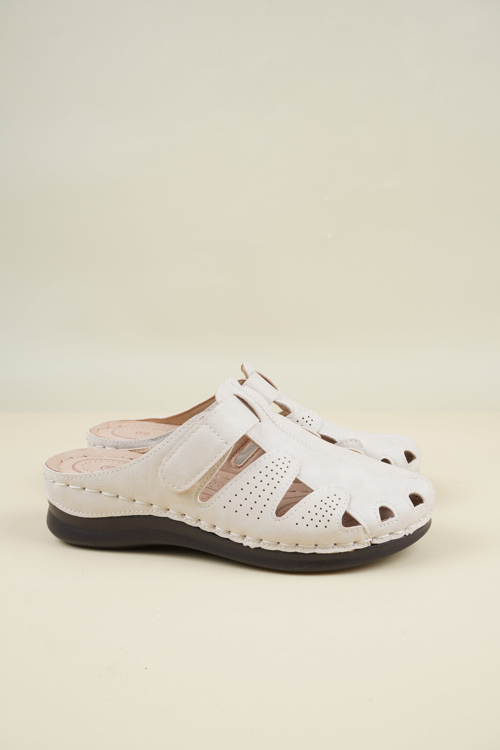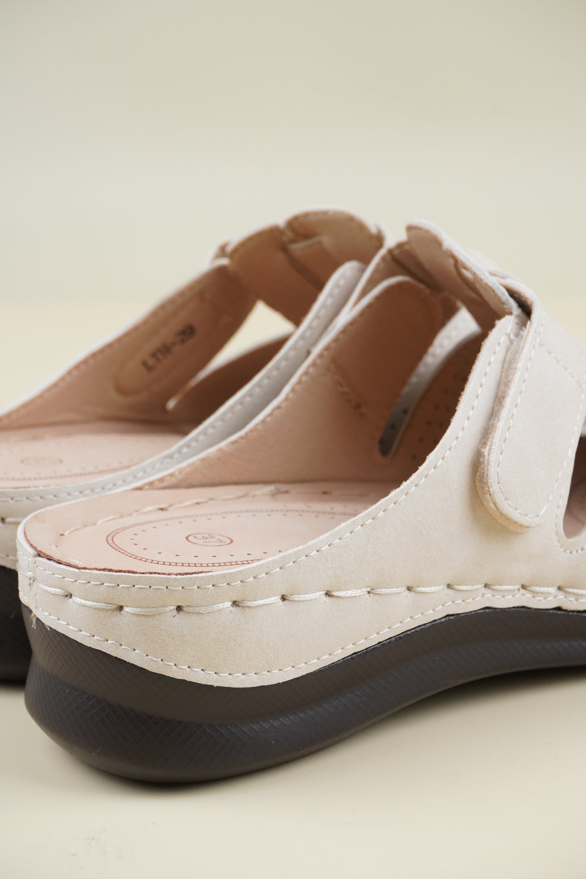 Wide-Fit Round-Toe Breathable Women's Slippers - Beige