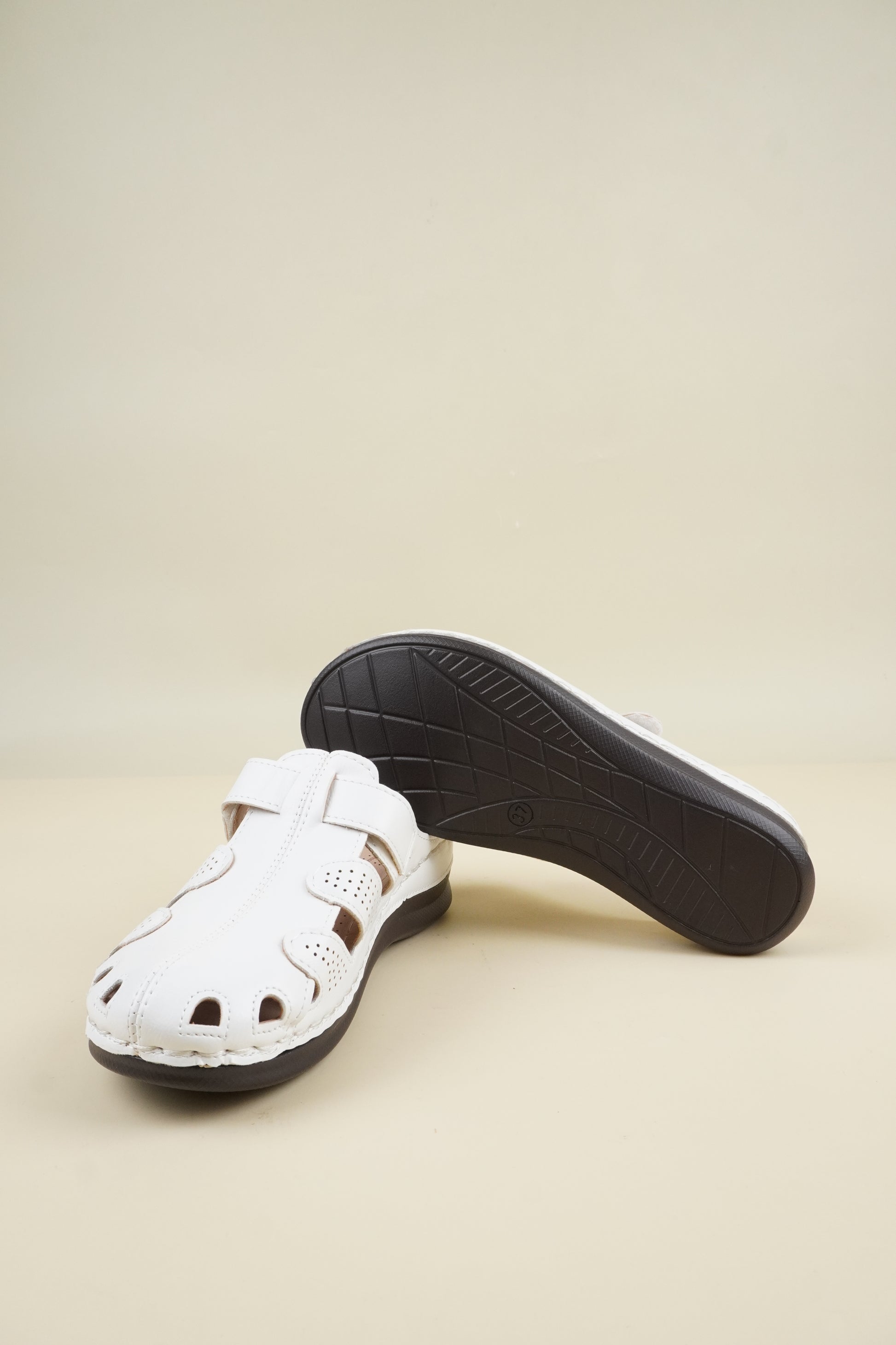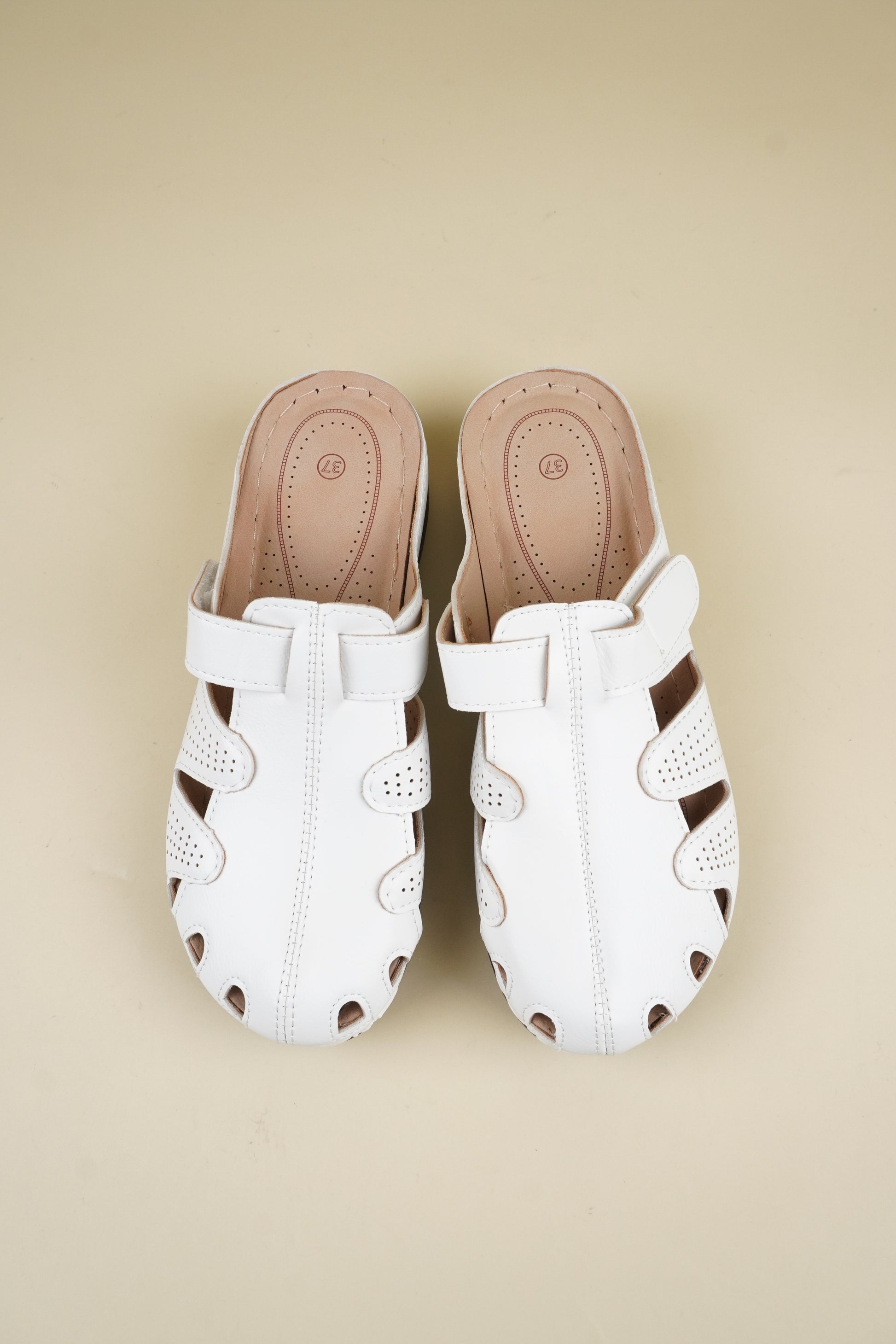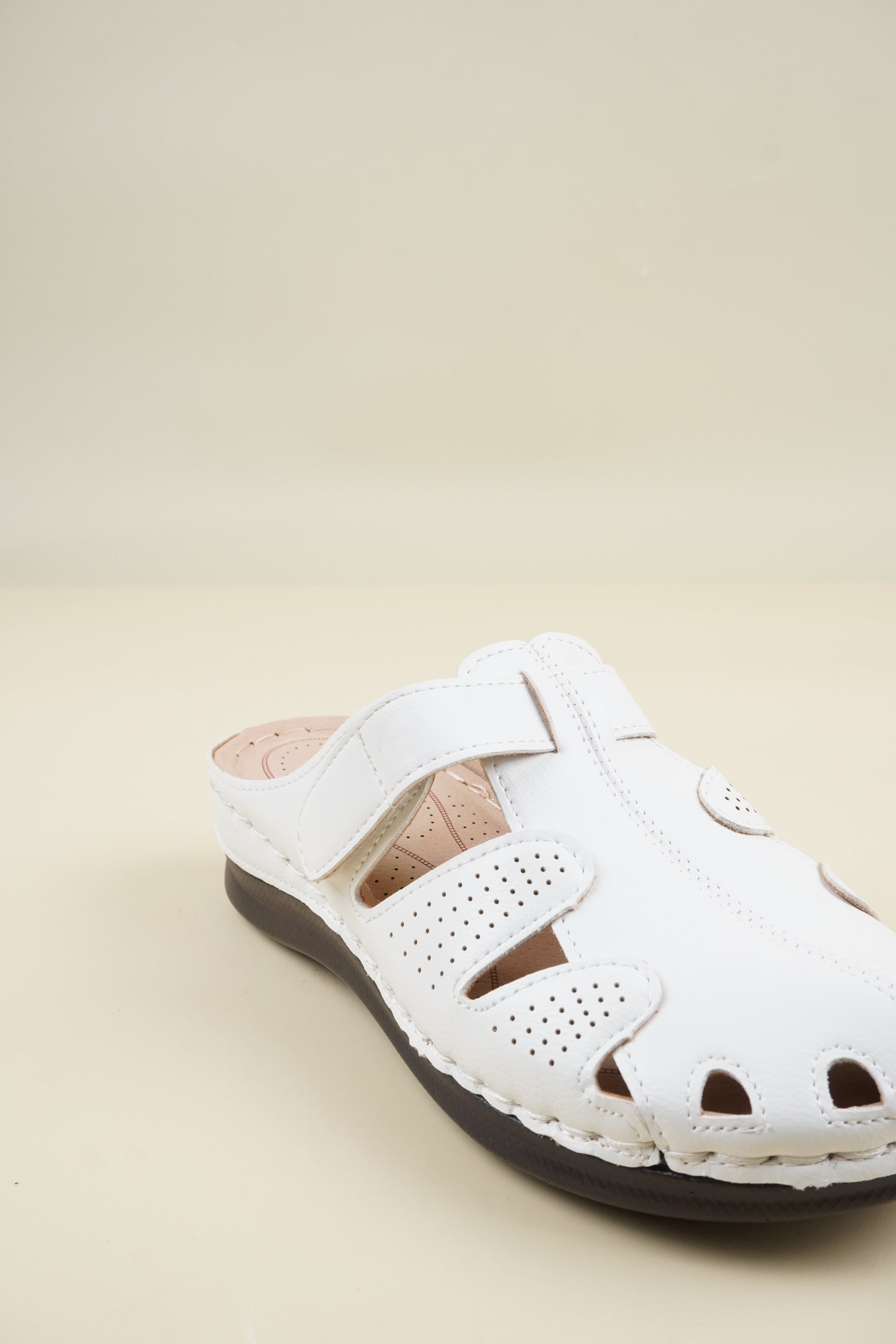 Wide-Fit Round-Toe Breathable Women's Slippers - White