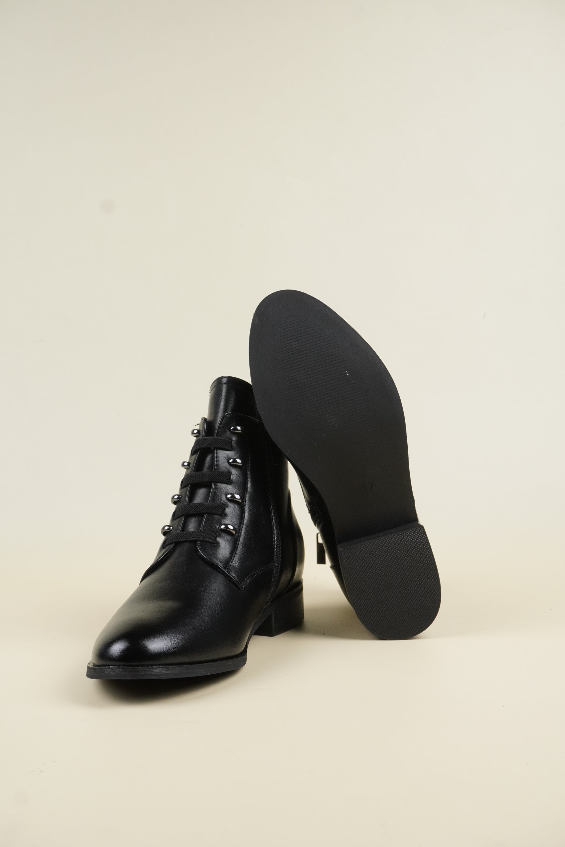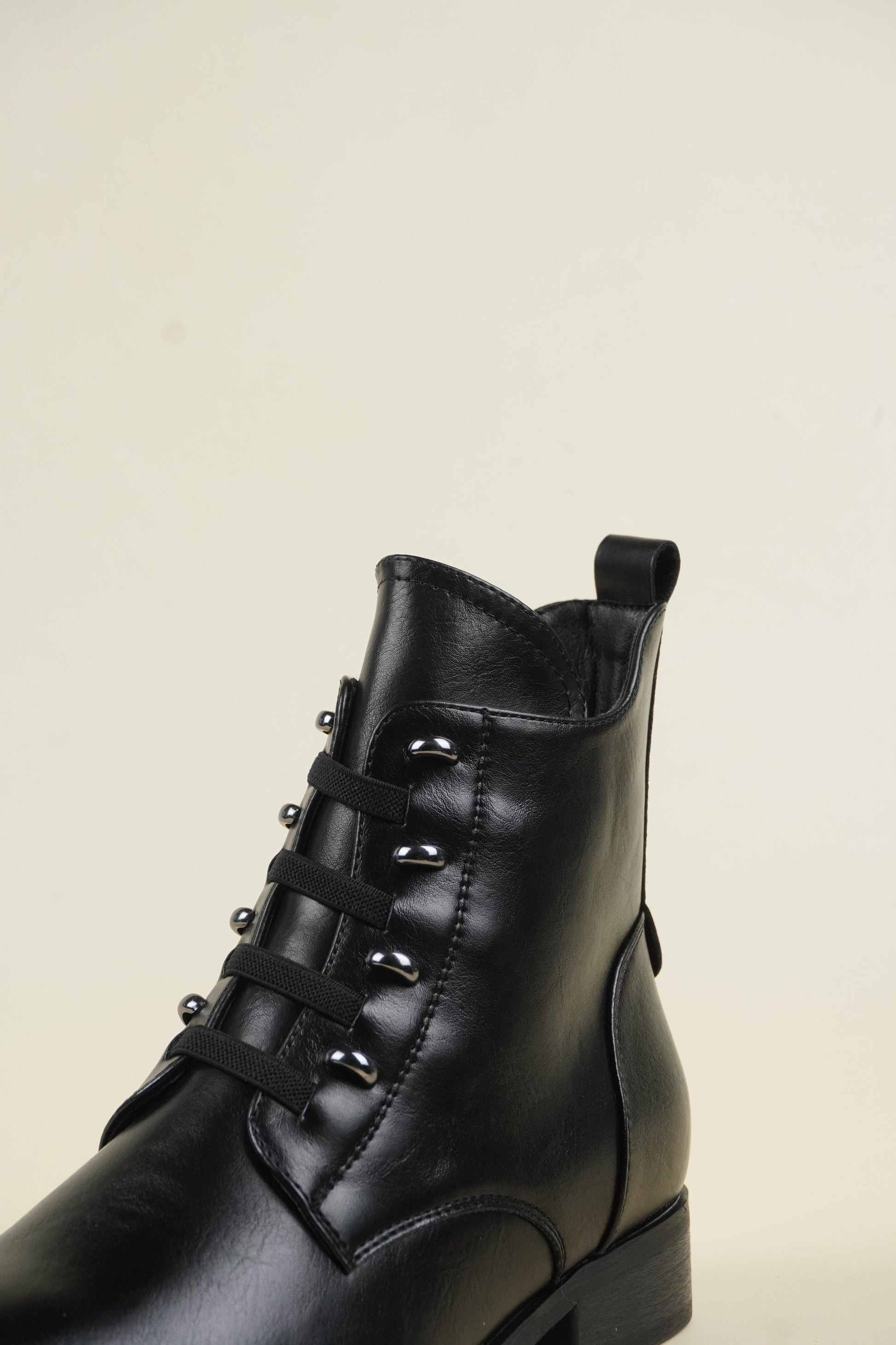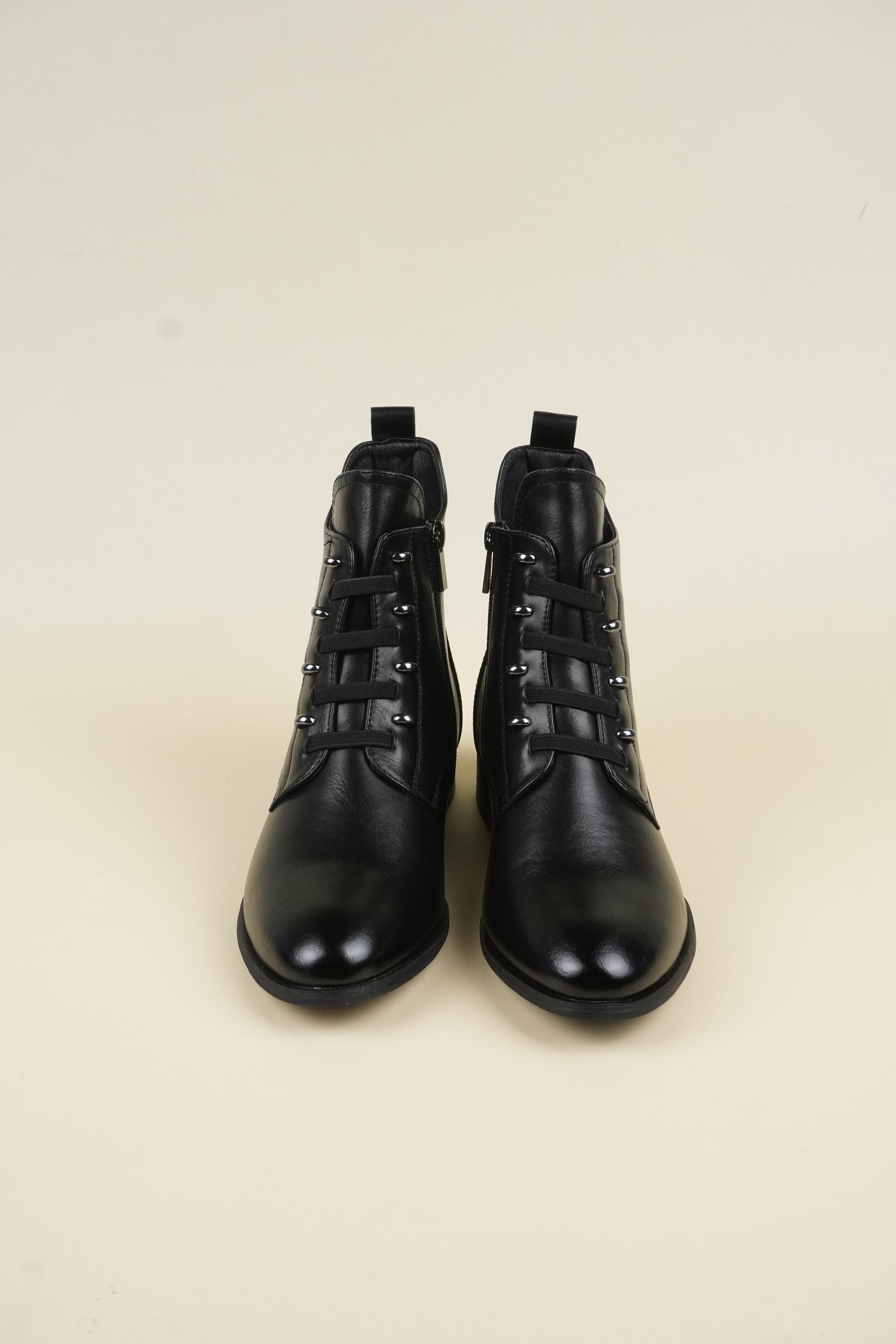 Ankle boots with 3 cm* flat heels, compliments all outfit yet comfortable for all-day wear.