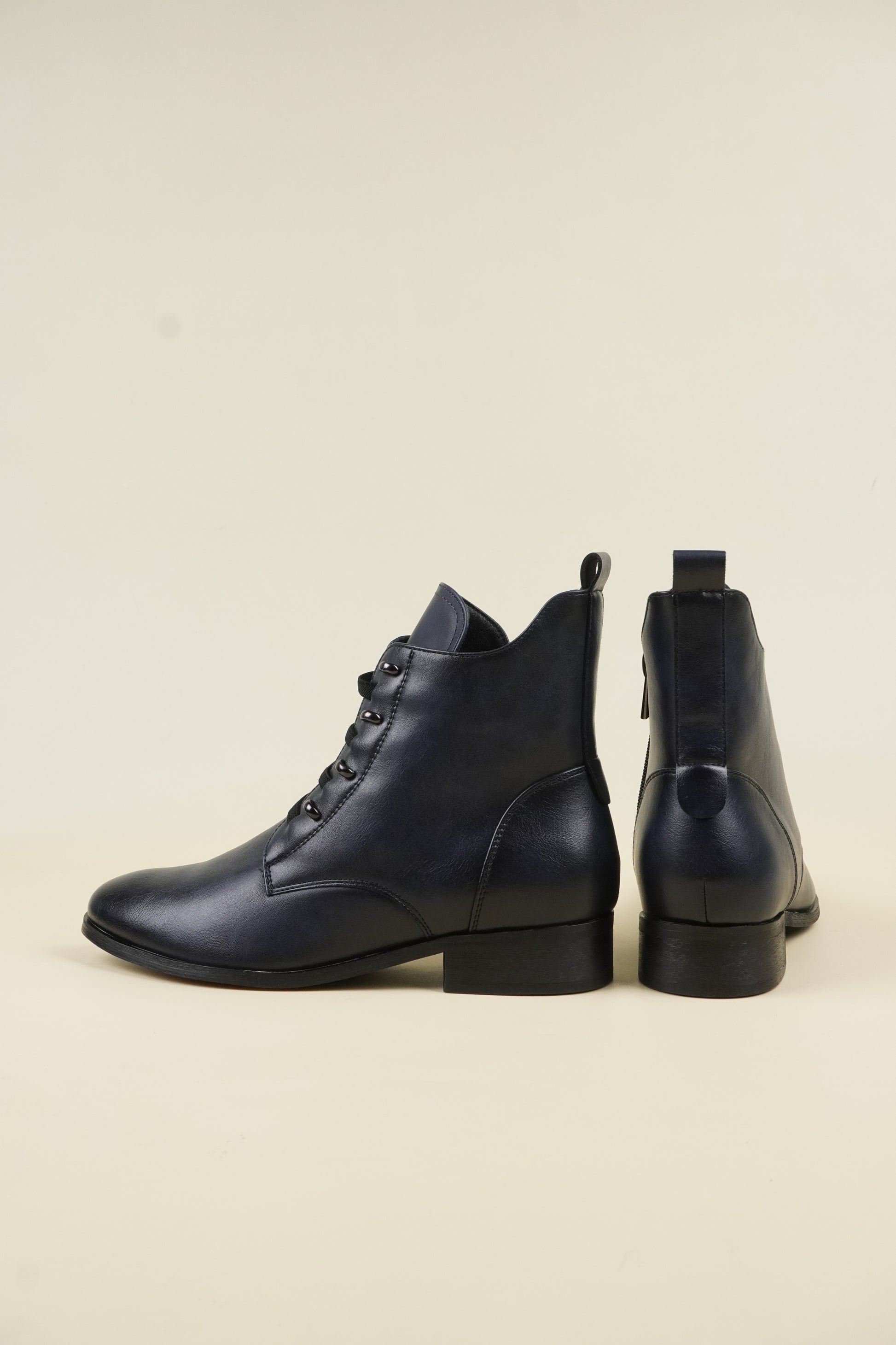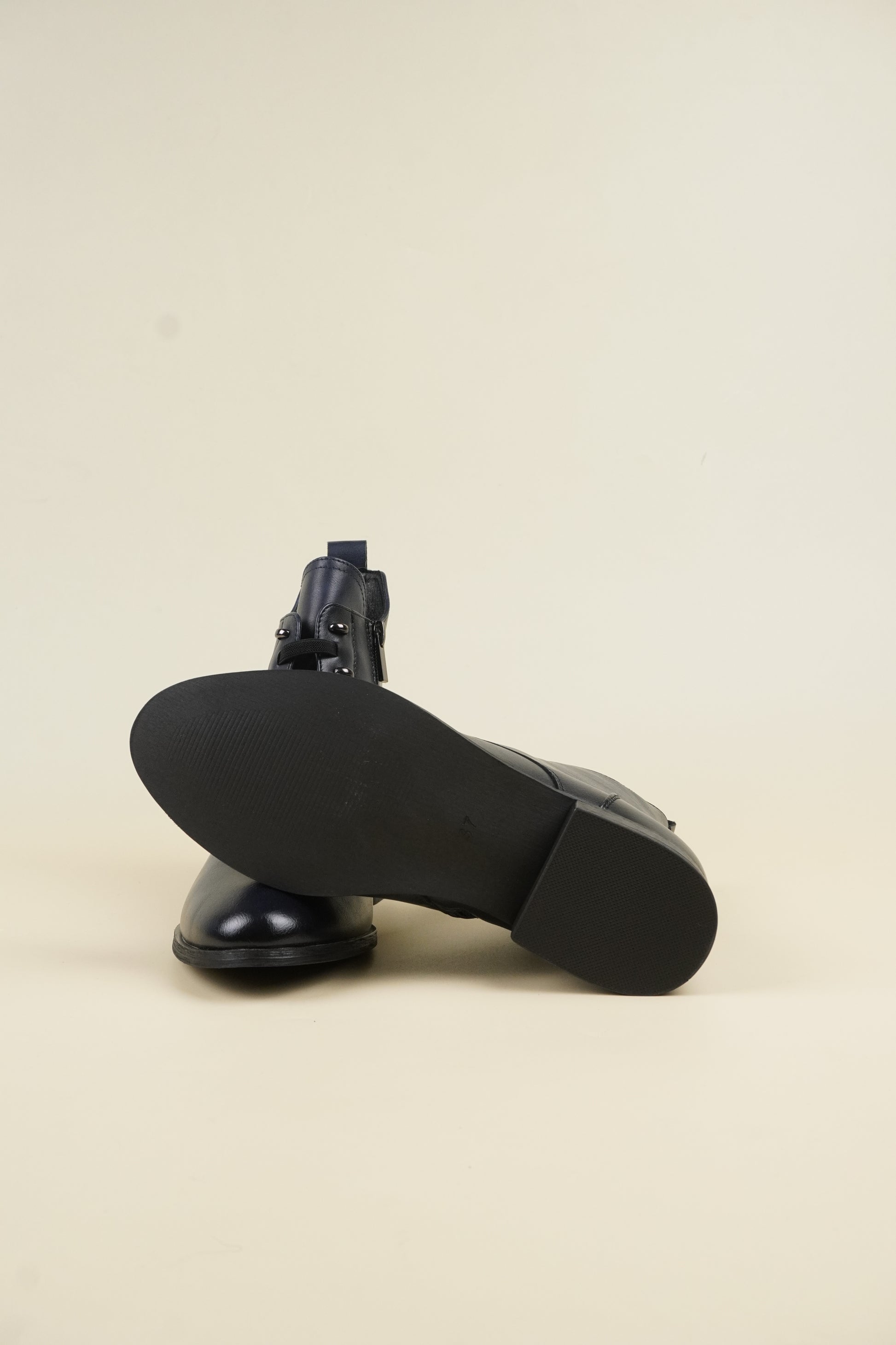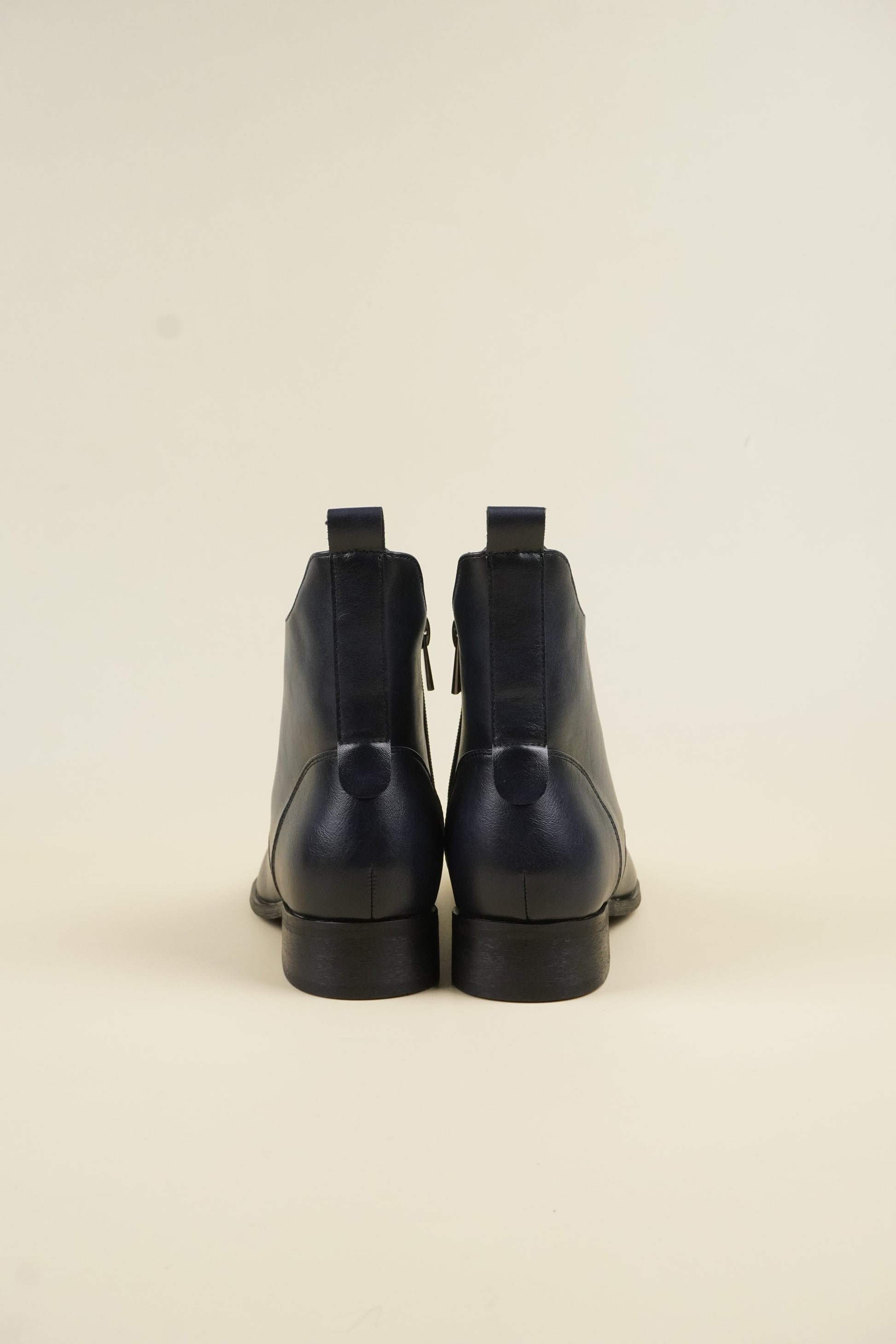 Ankle boots with 3 cm* flat heels, compliments all outfit yet comfortable for all-day wear.