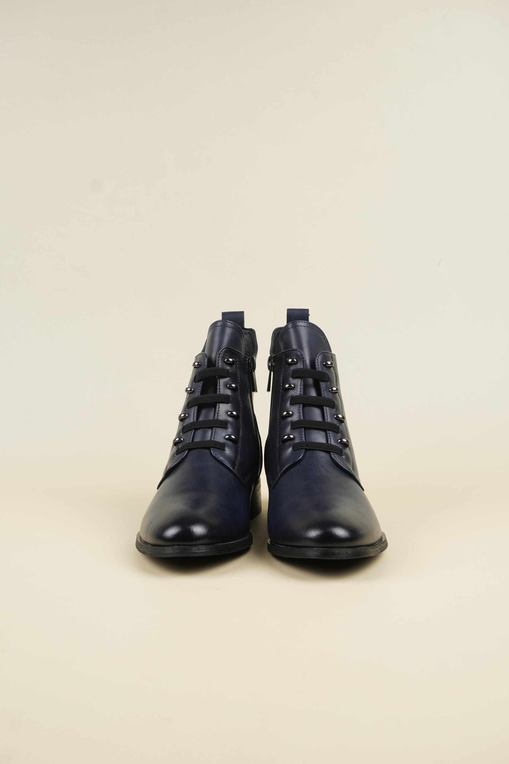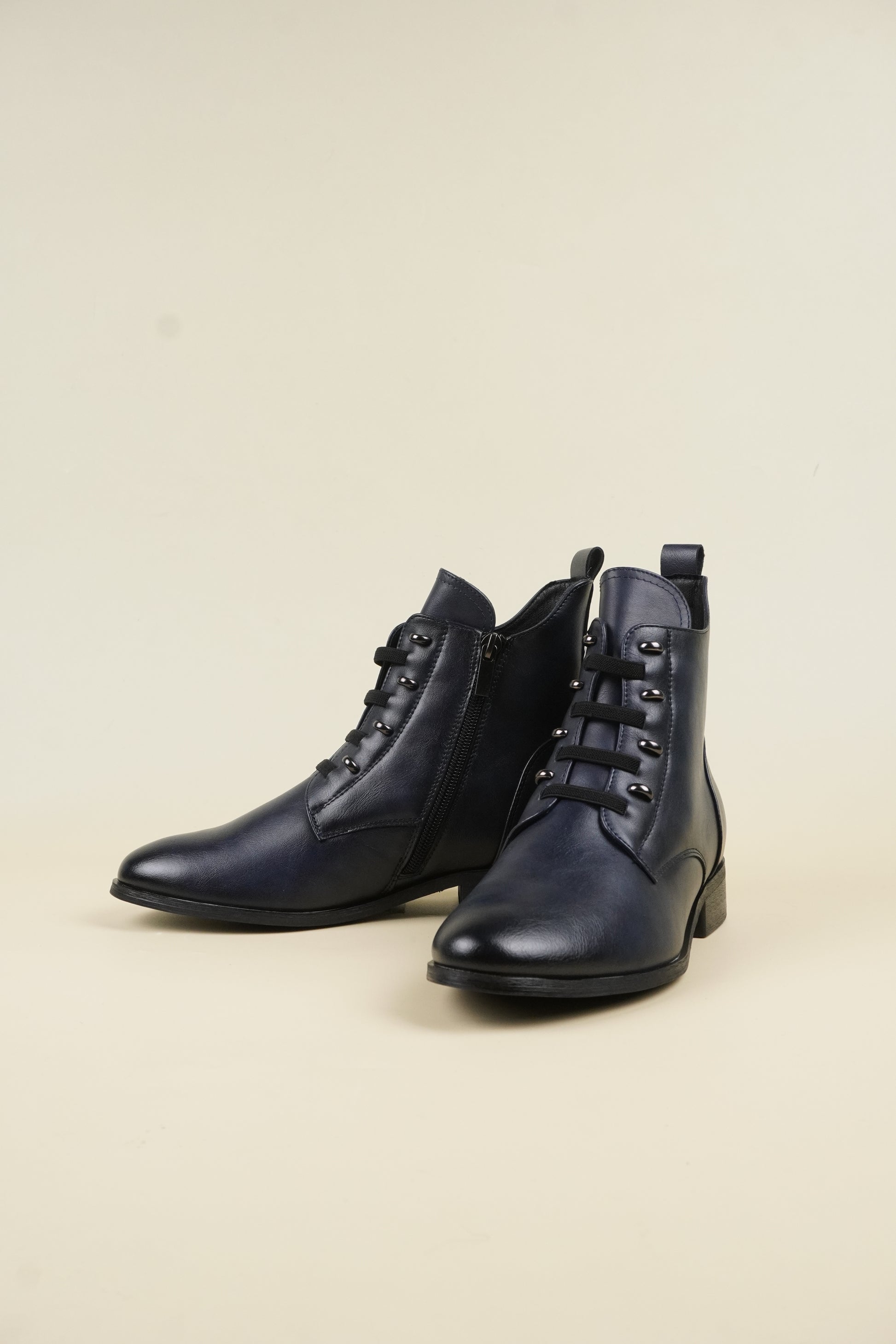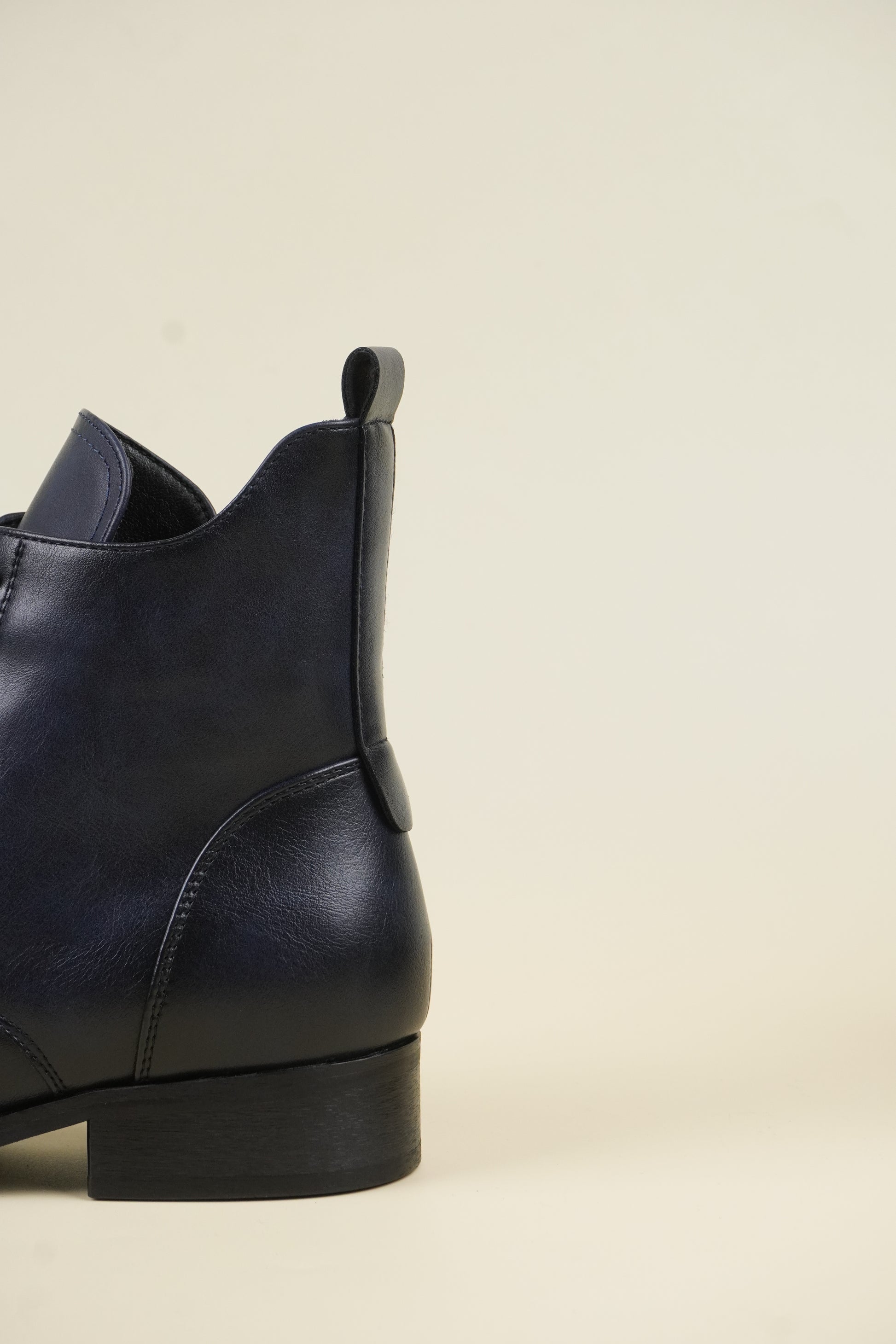Ankle boots with 3 cm* flat heels, compliments all outfit yet comfortable for all-day wear.