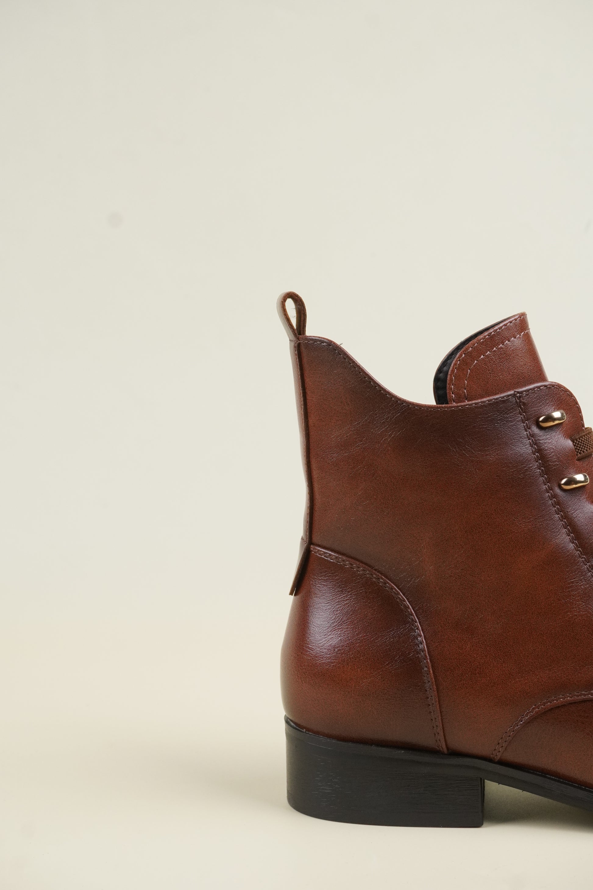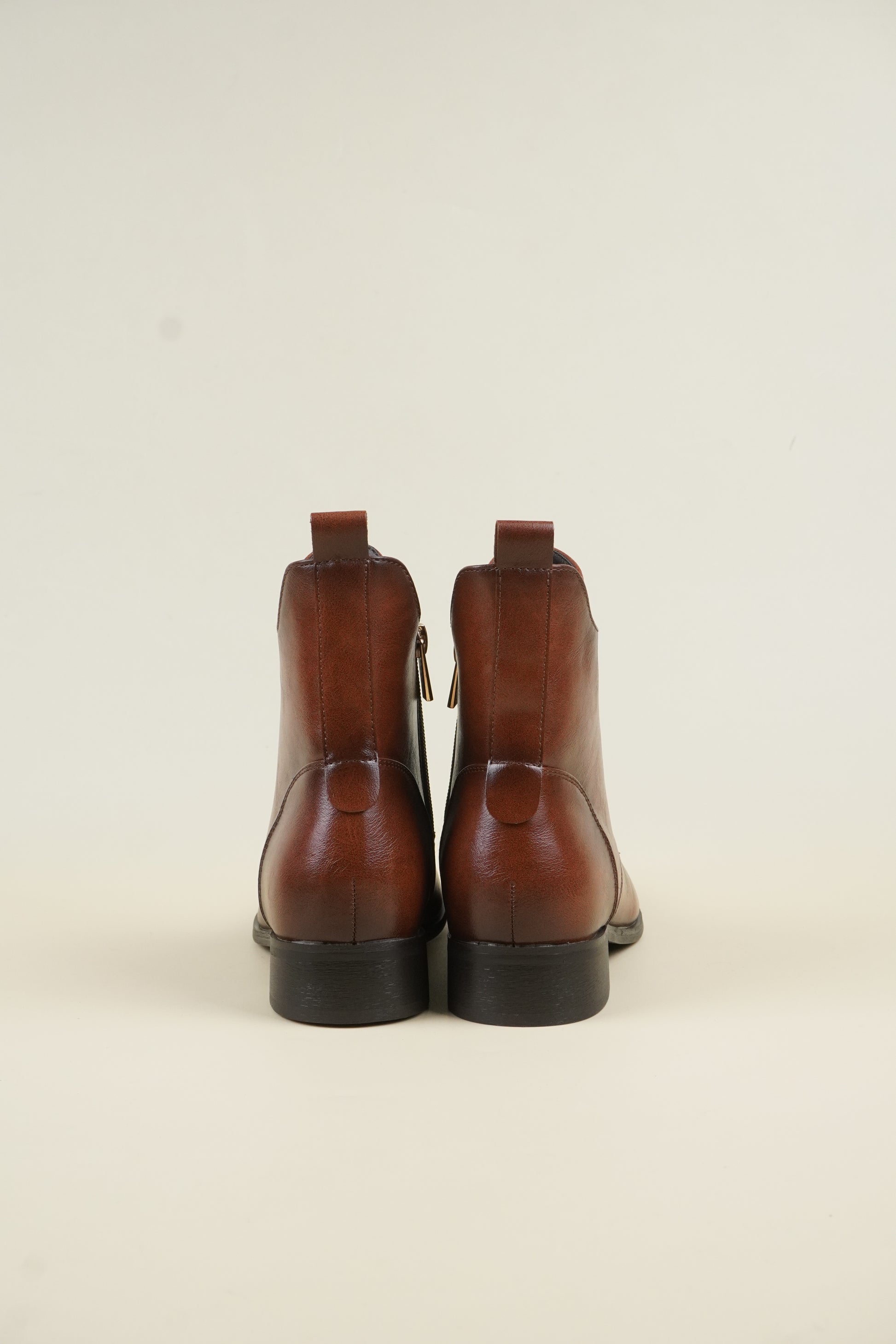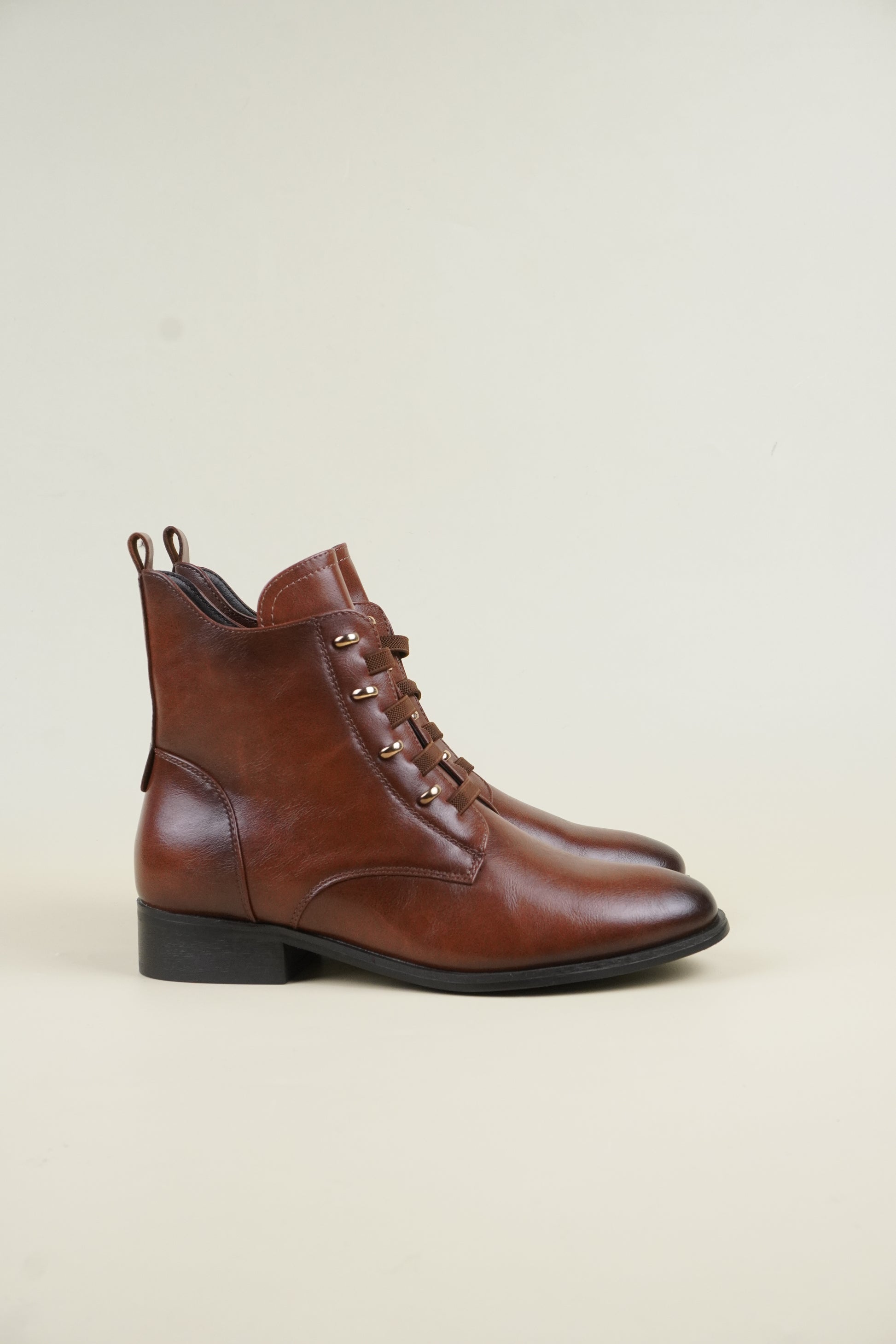 Ankle boots with 3 cm* flat heels, compliments all outfit yet comfortable for all-day wear.