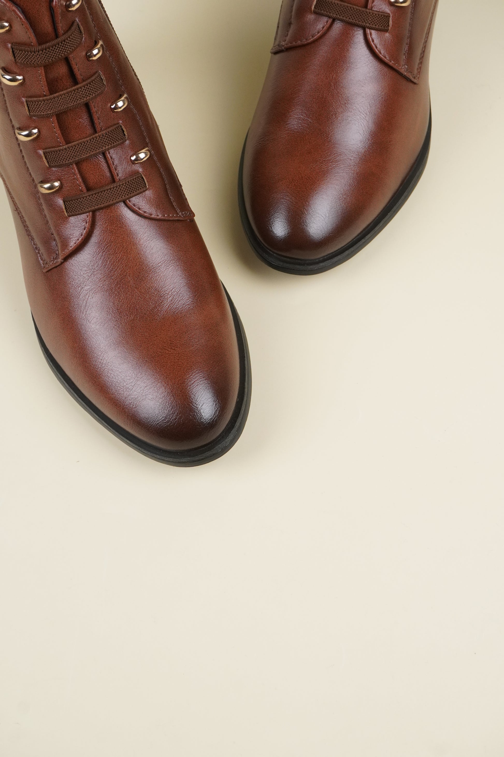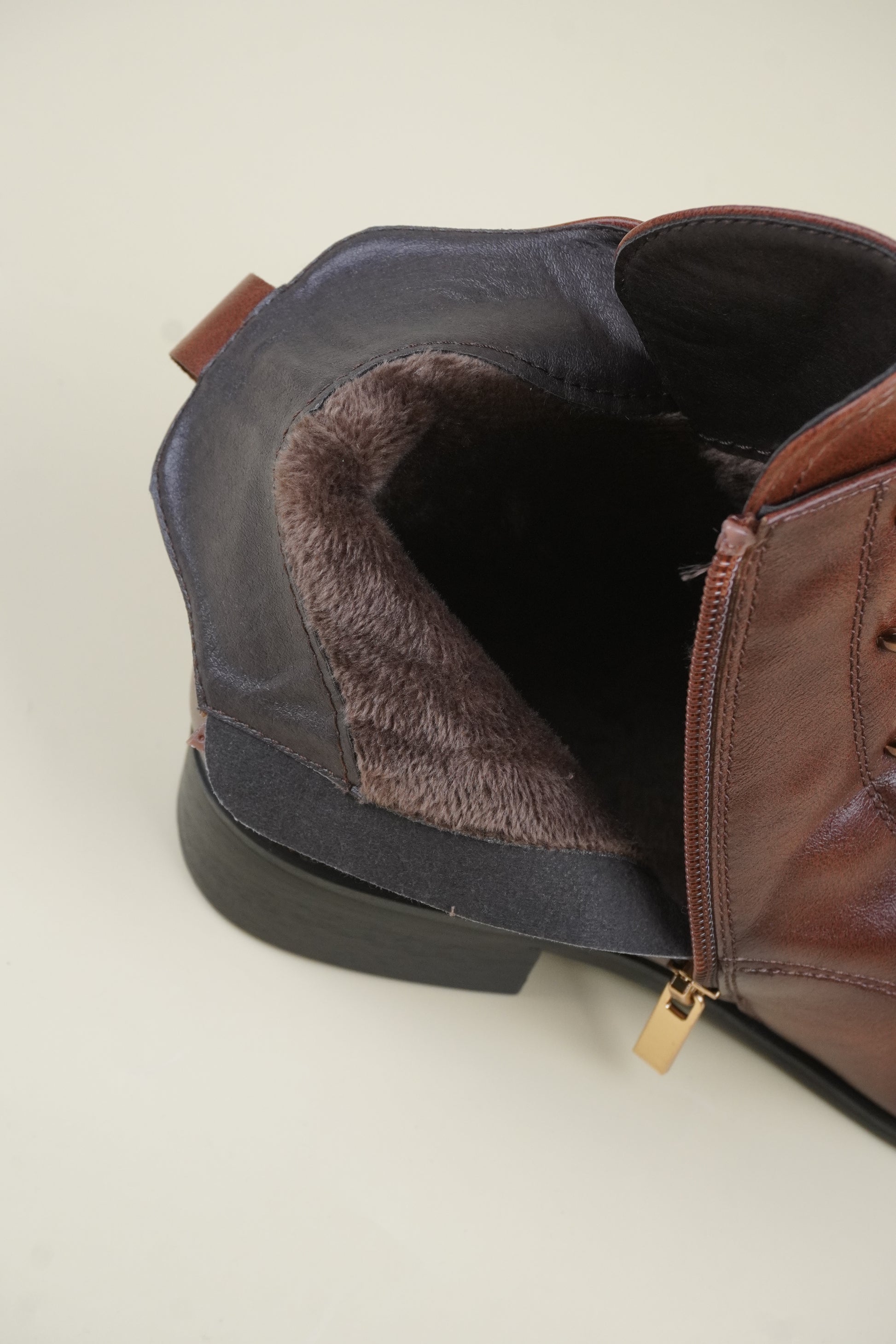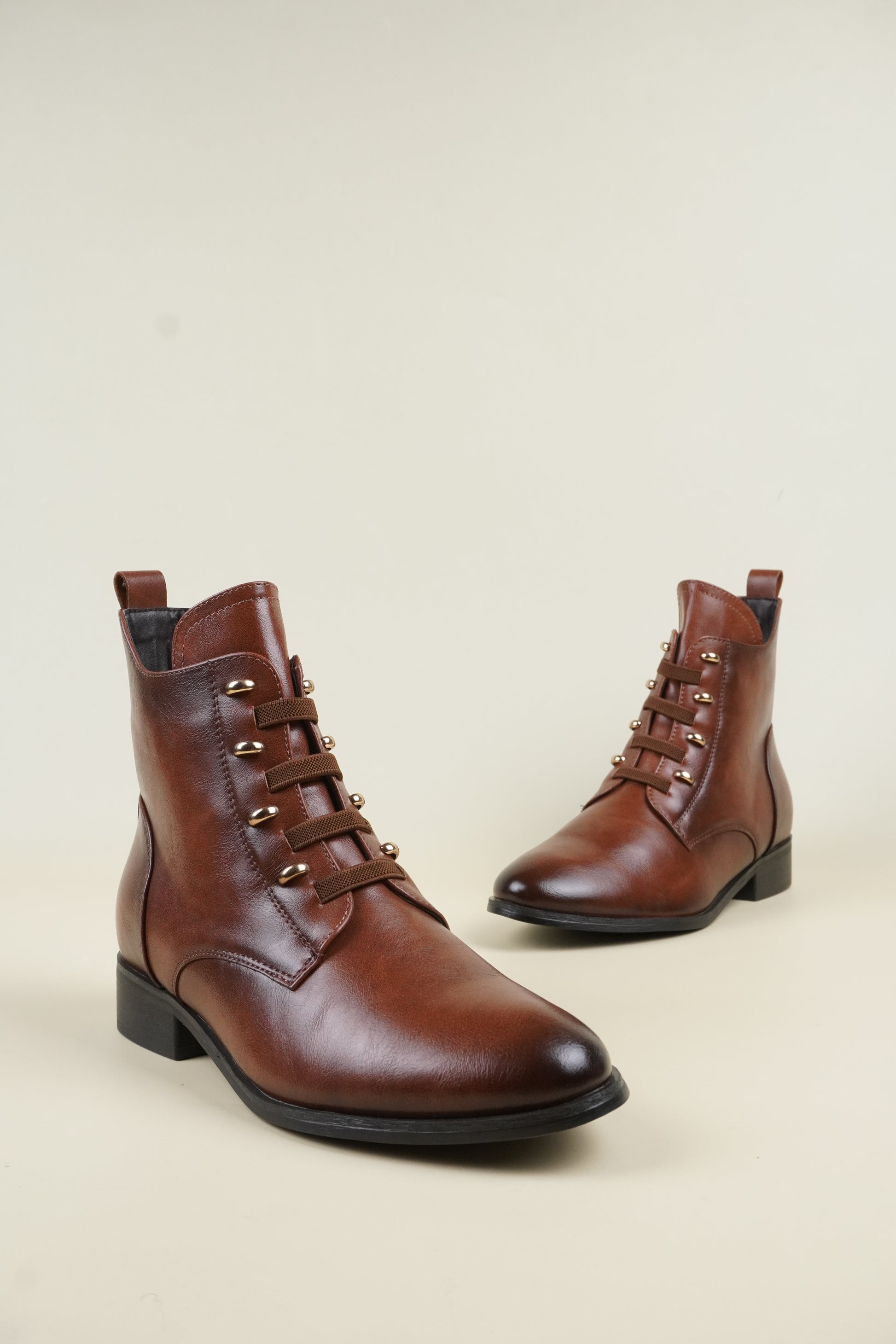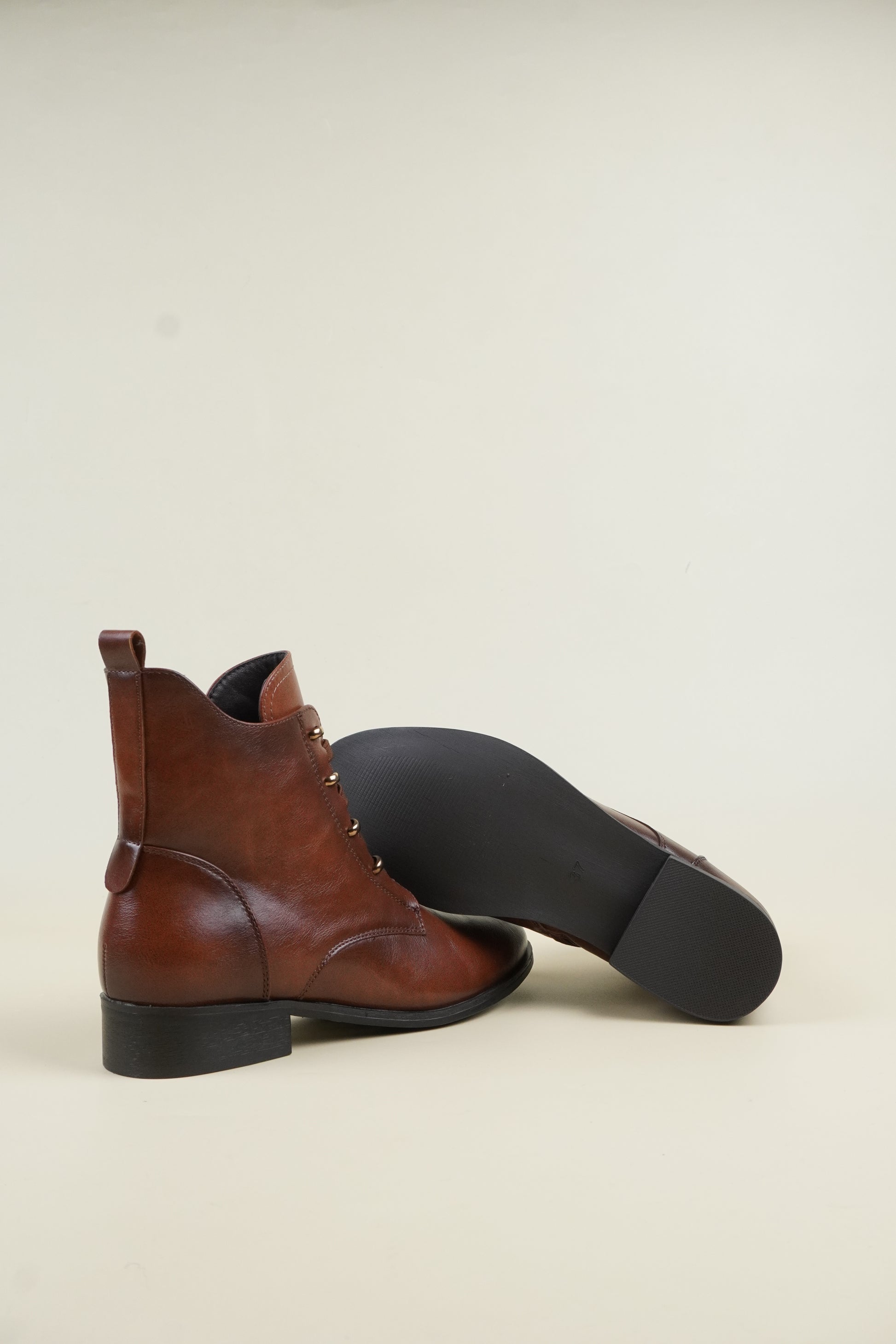Ankle boots with 3 cm* flat heels, compliments all outfit yet comfortable for all-day wear.