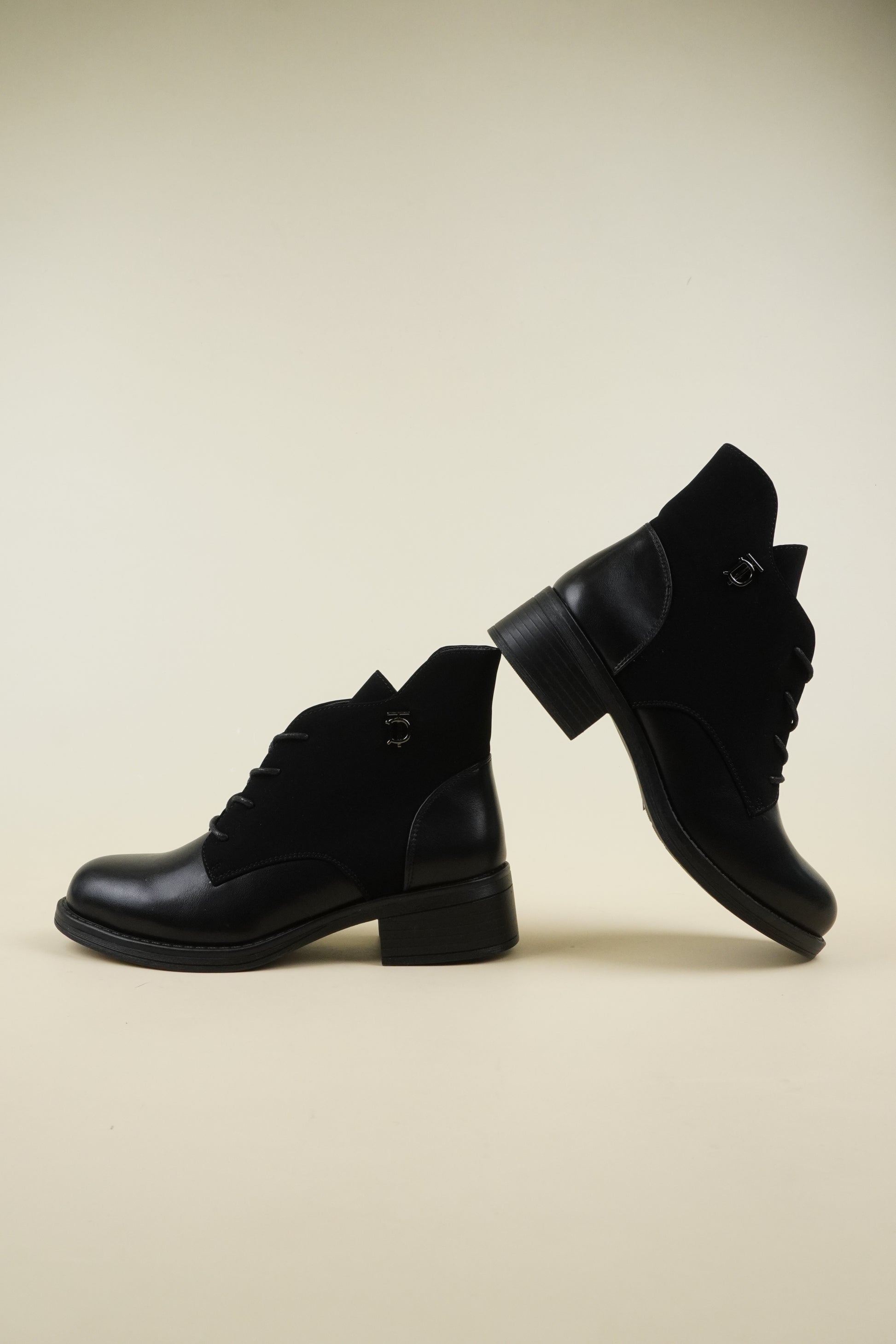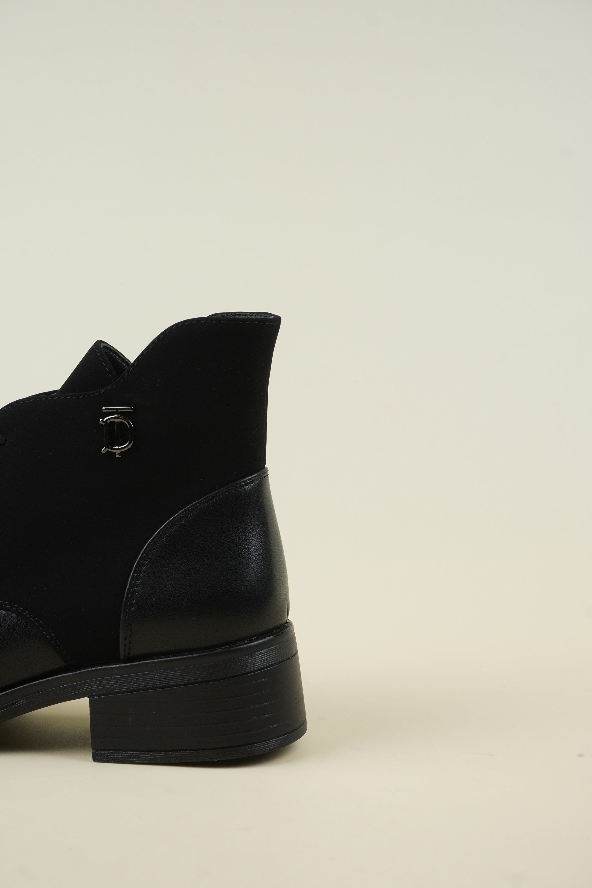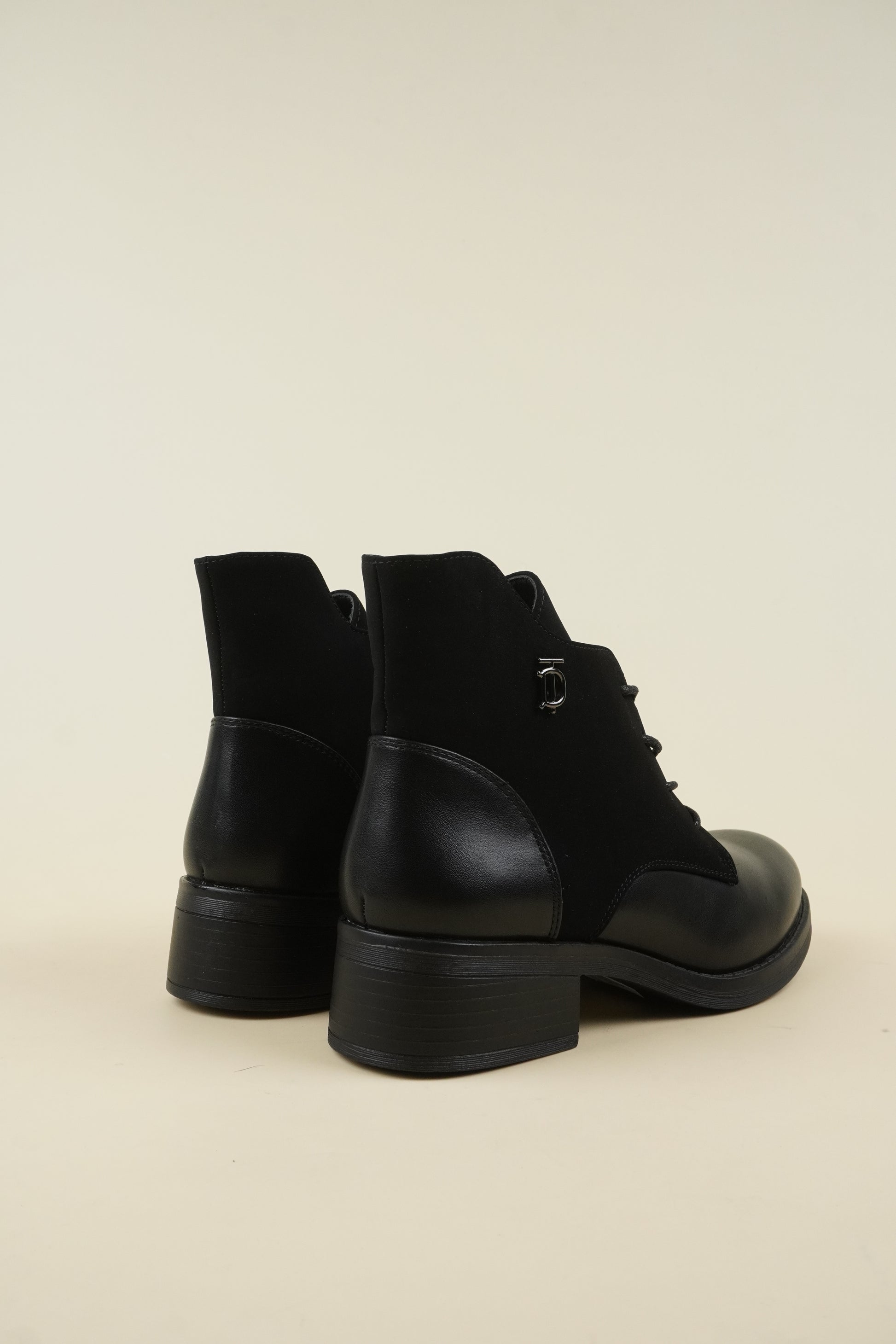 Flat ankle boots mixed with eco-leather and eco-suede, the 4 cm* block heel makes it comfortable for all-day wear.