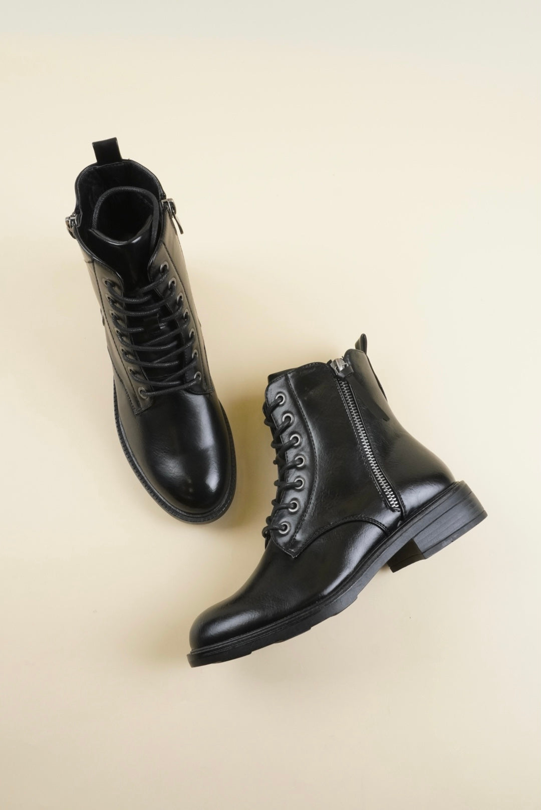 Ankle boots with decorative zipper on the side, comfy and chic.