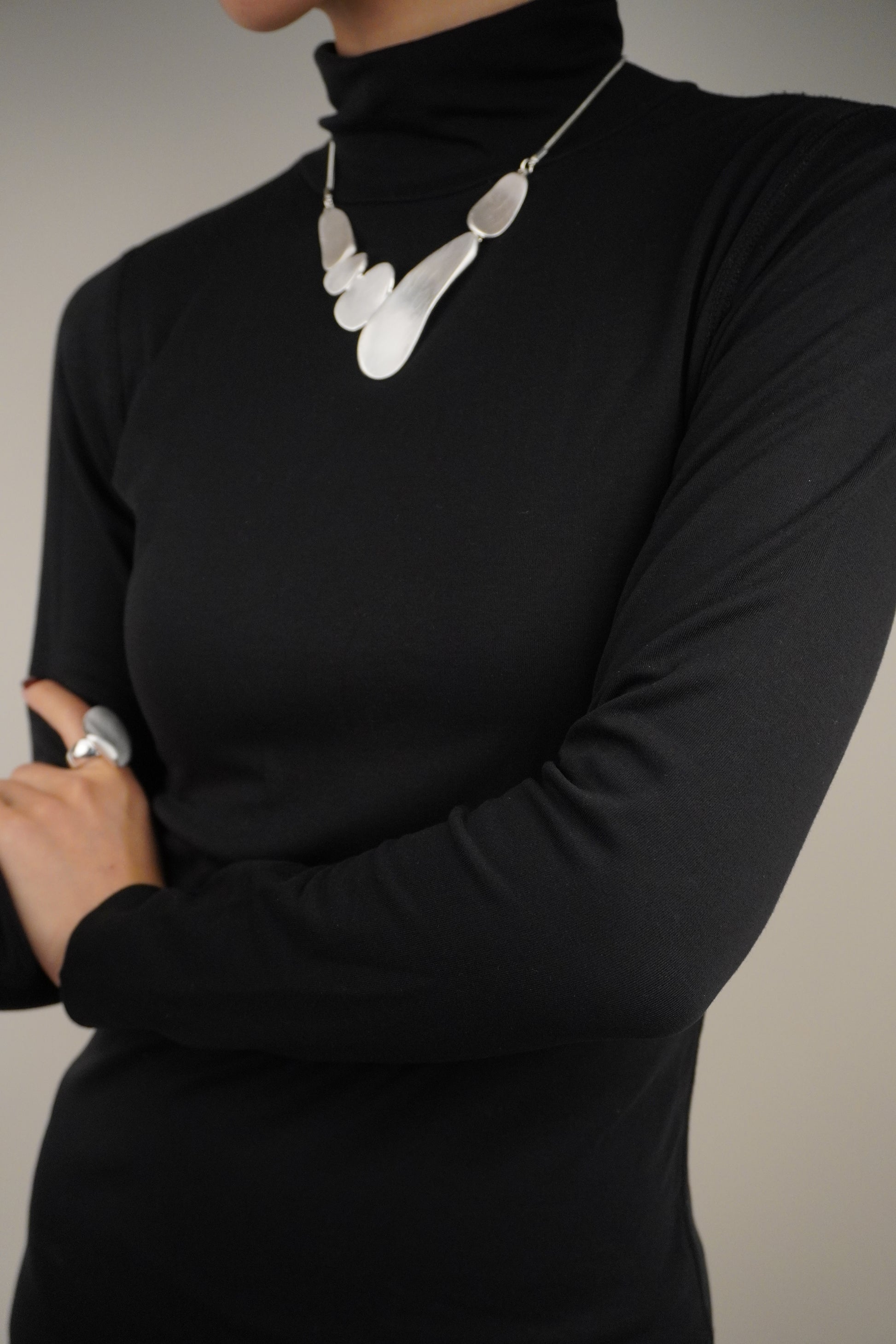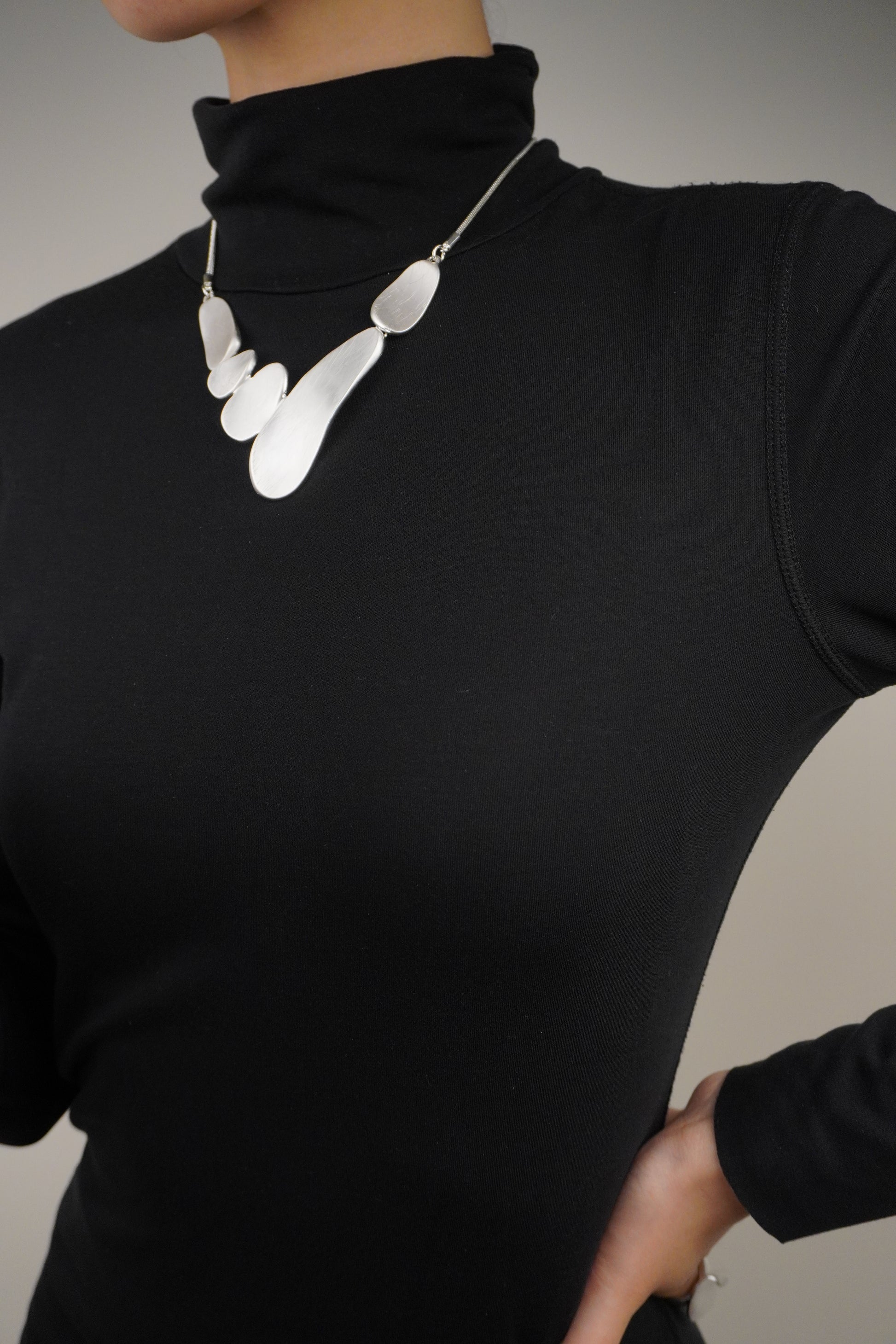 Hipoallergén, ezüstözött rozsdamentes acél nyaklánc.