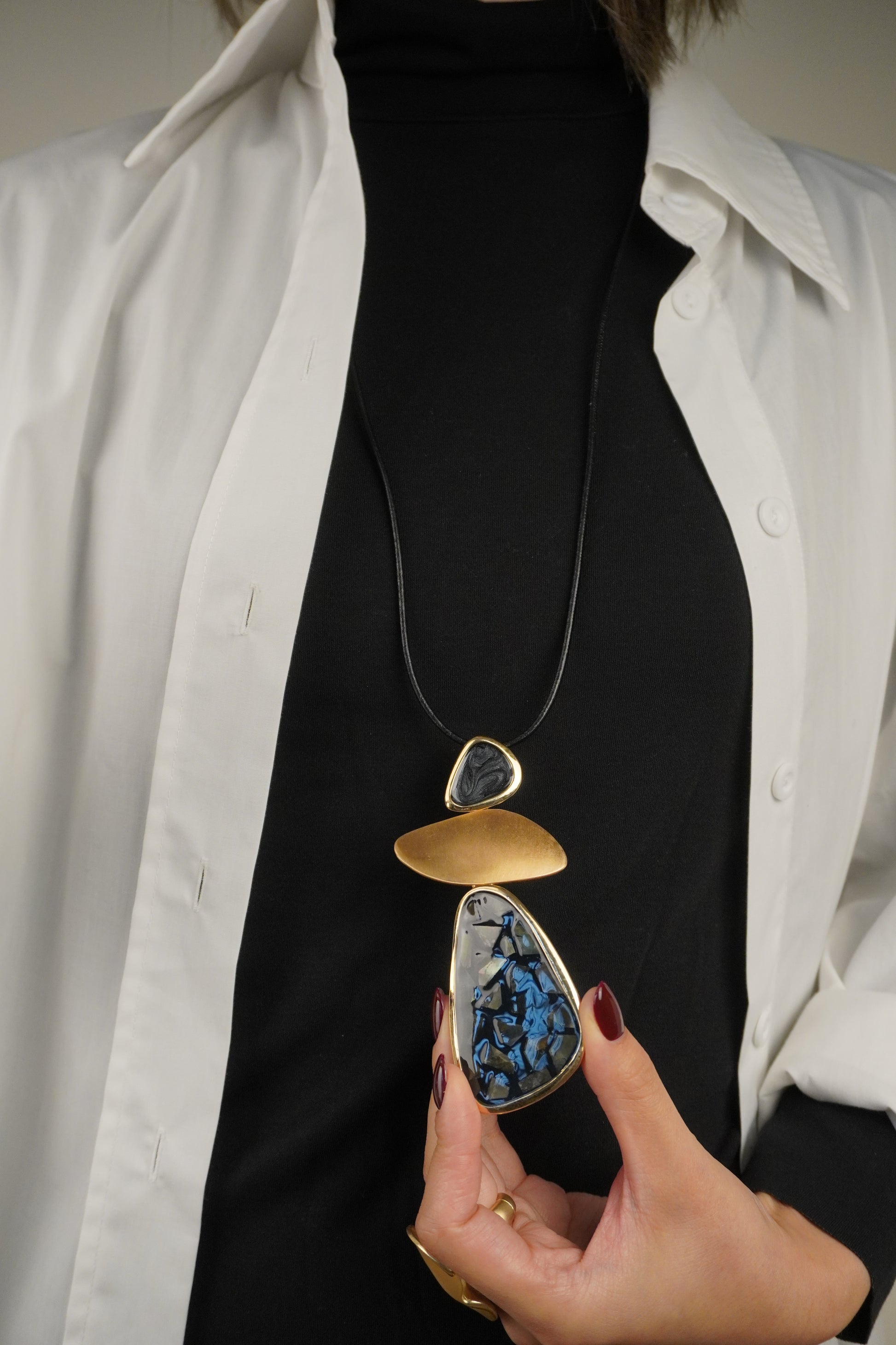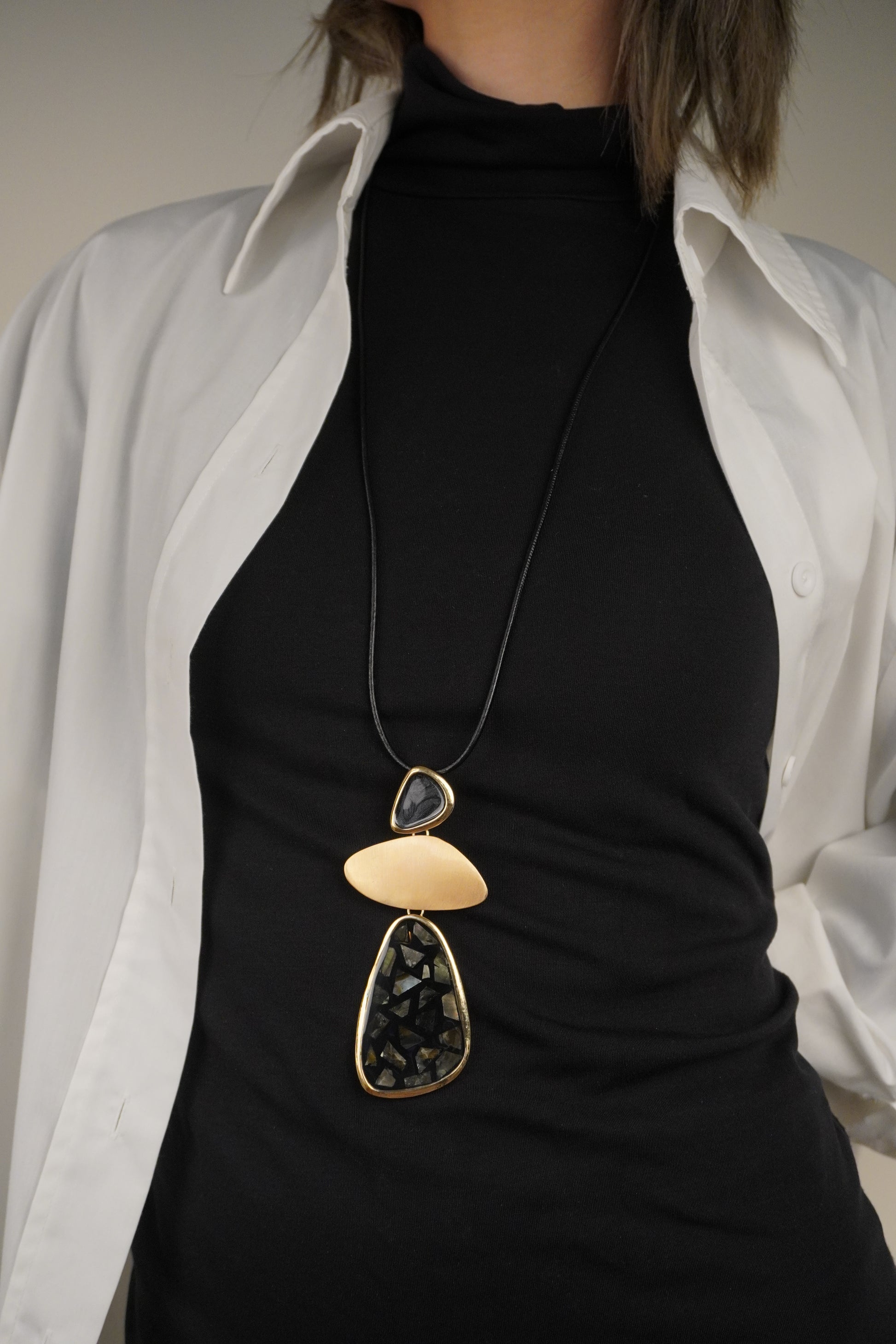 Arany Kagyló Geometrikus Hosszú Nyaklánc