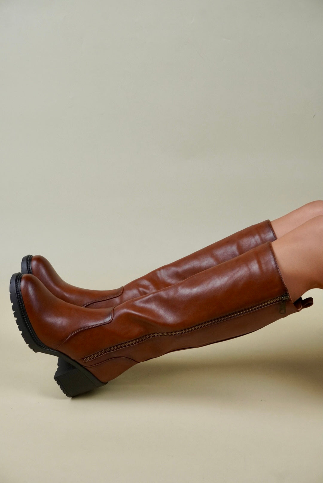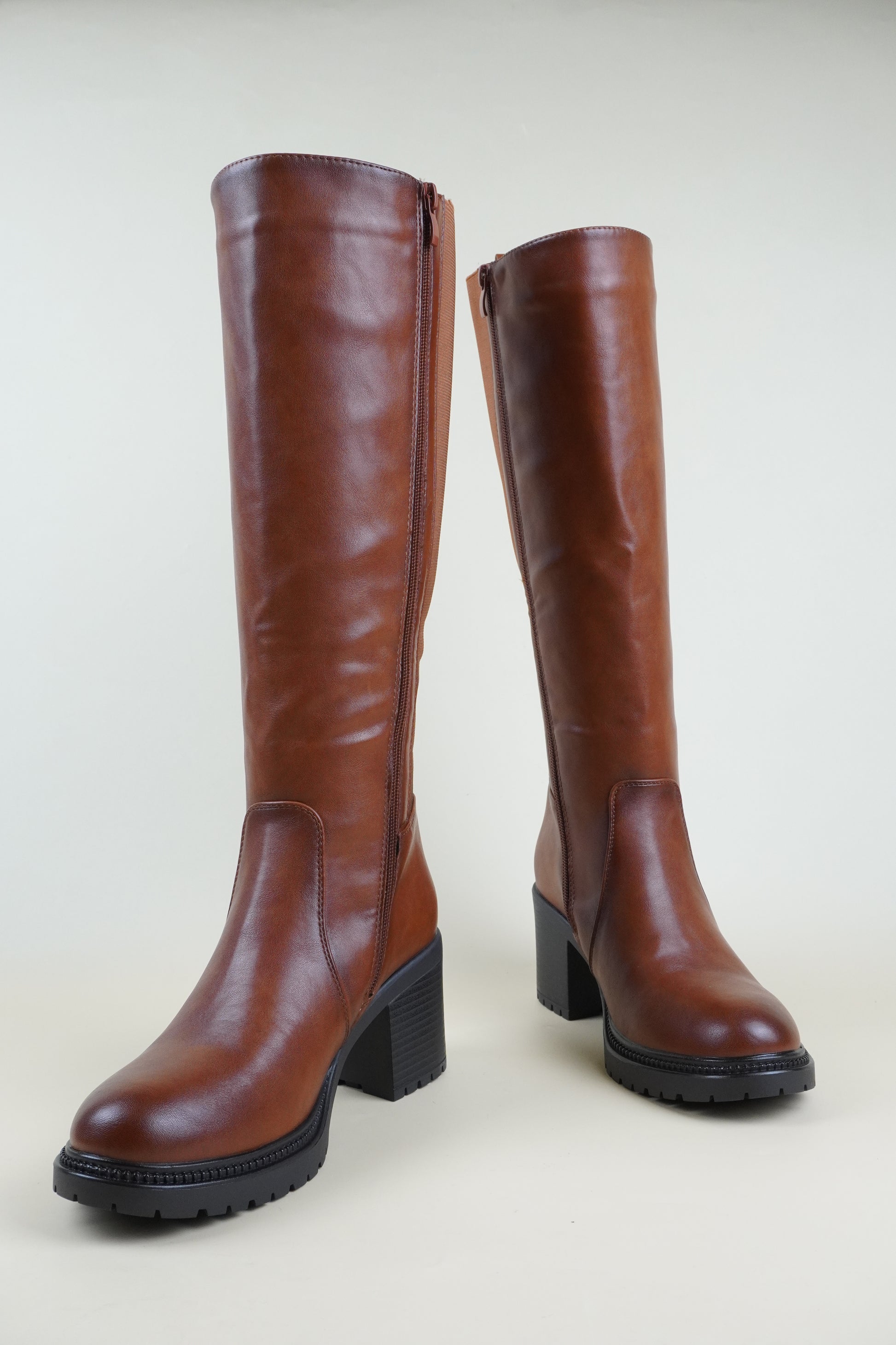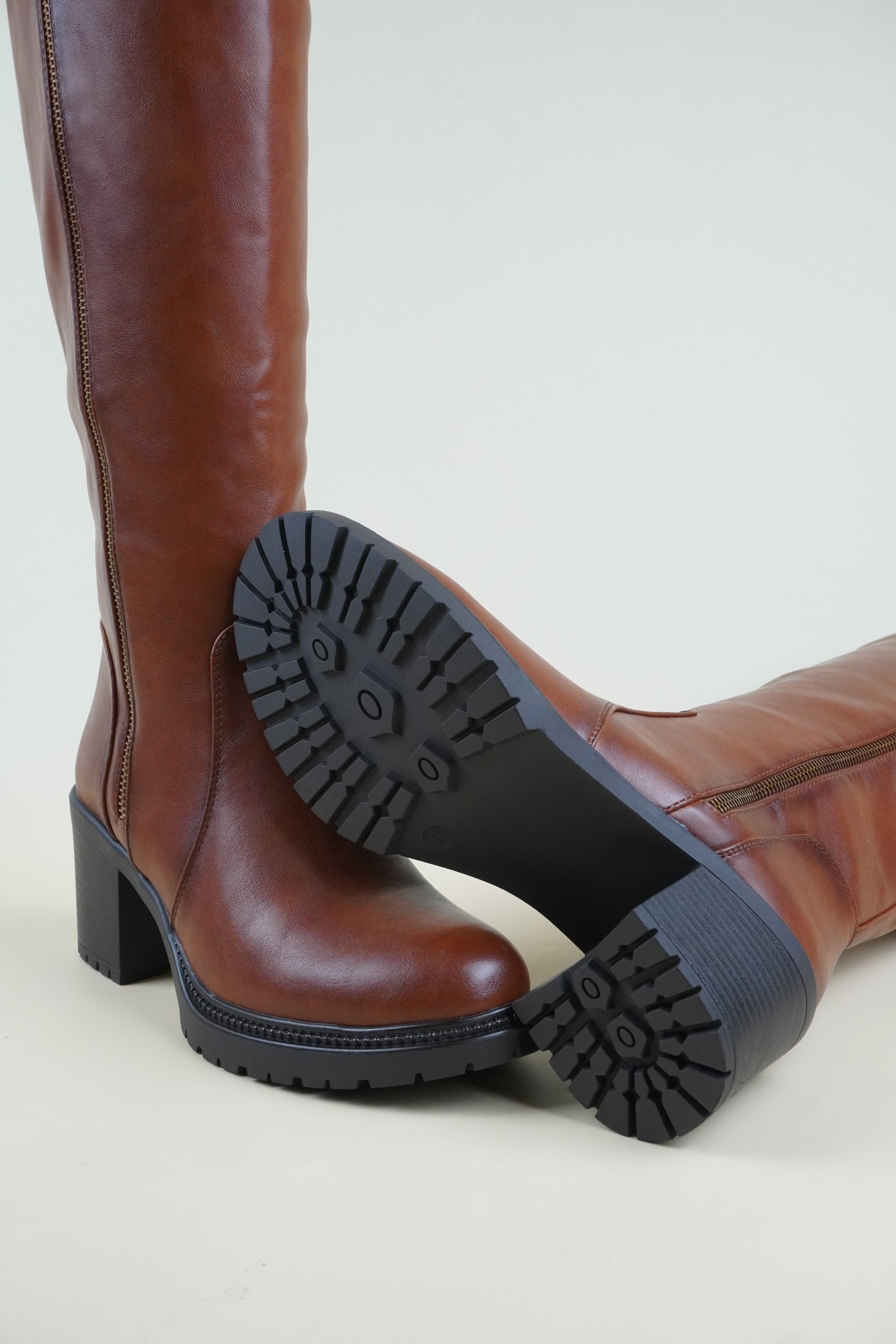 Térdig Érő Magassarkú Csizma - Karamellbarna
