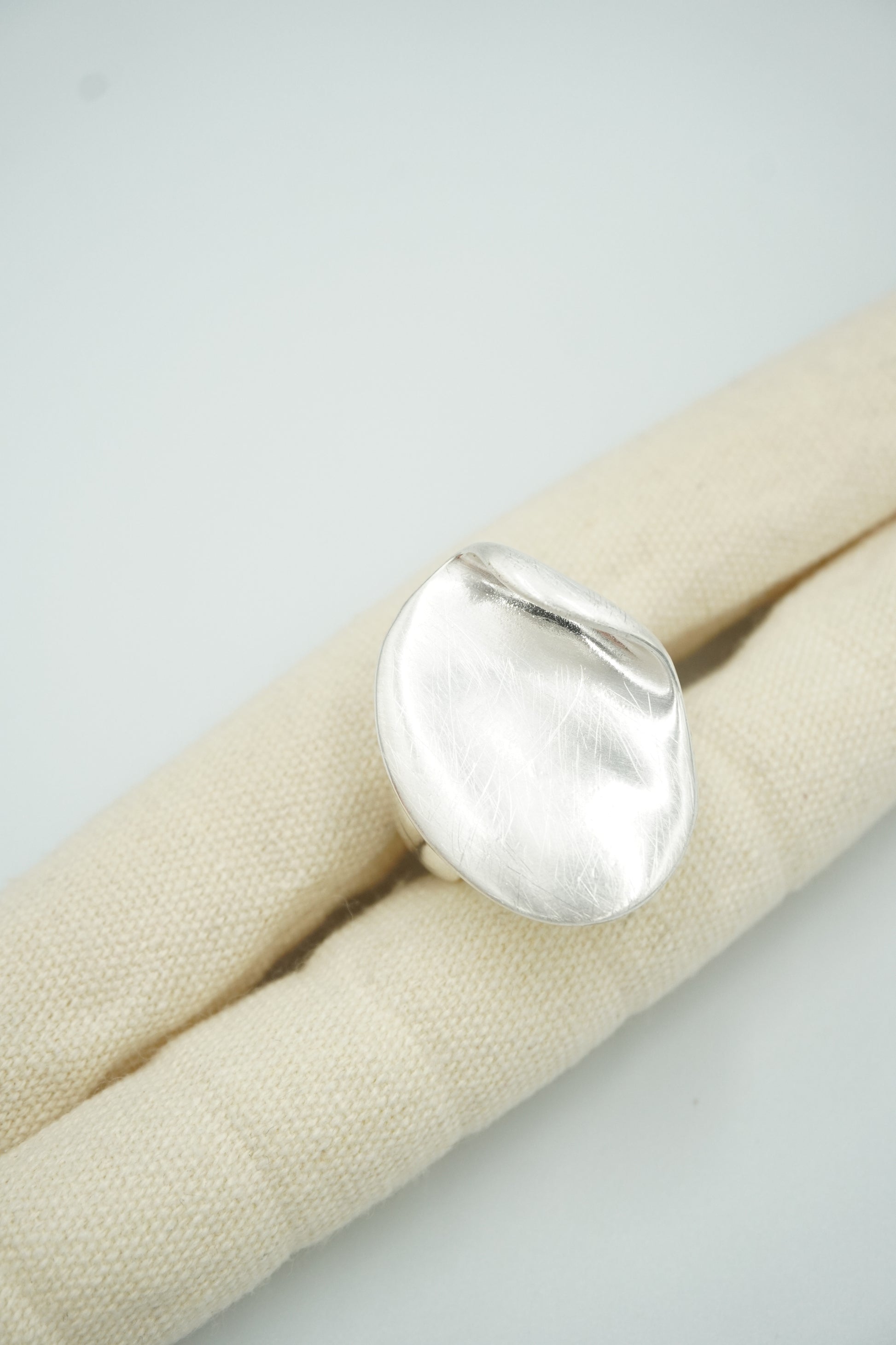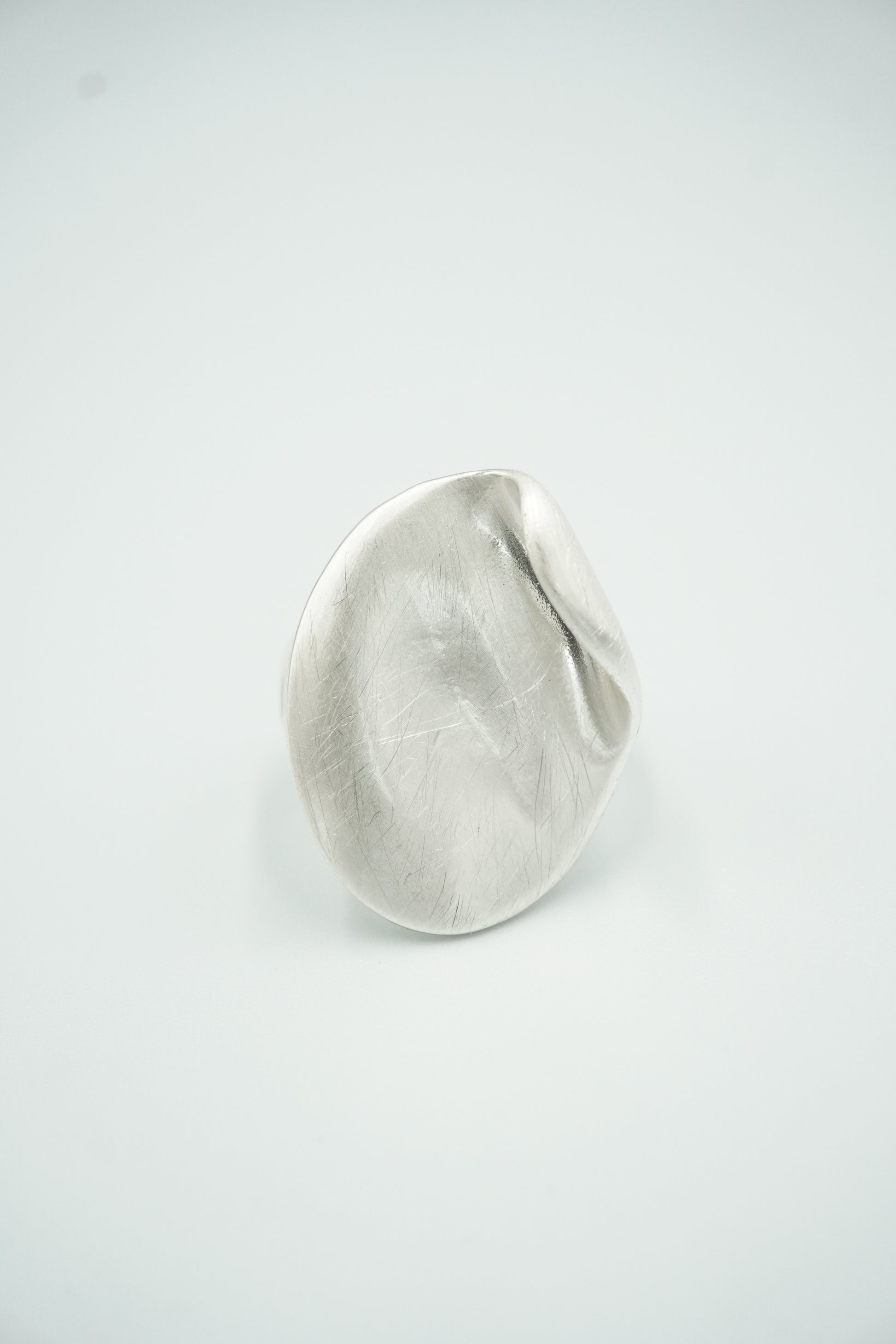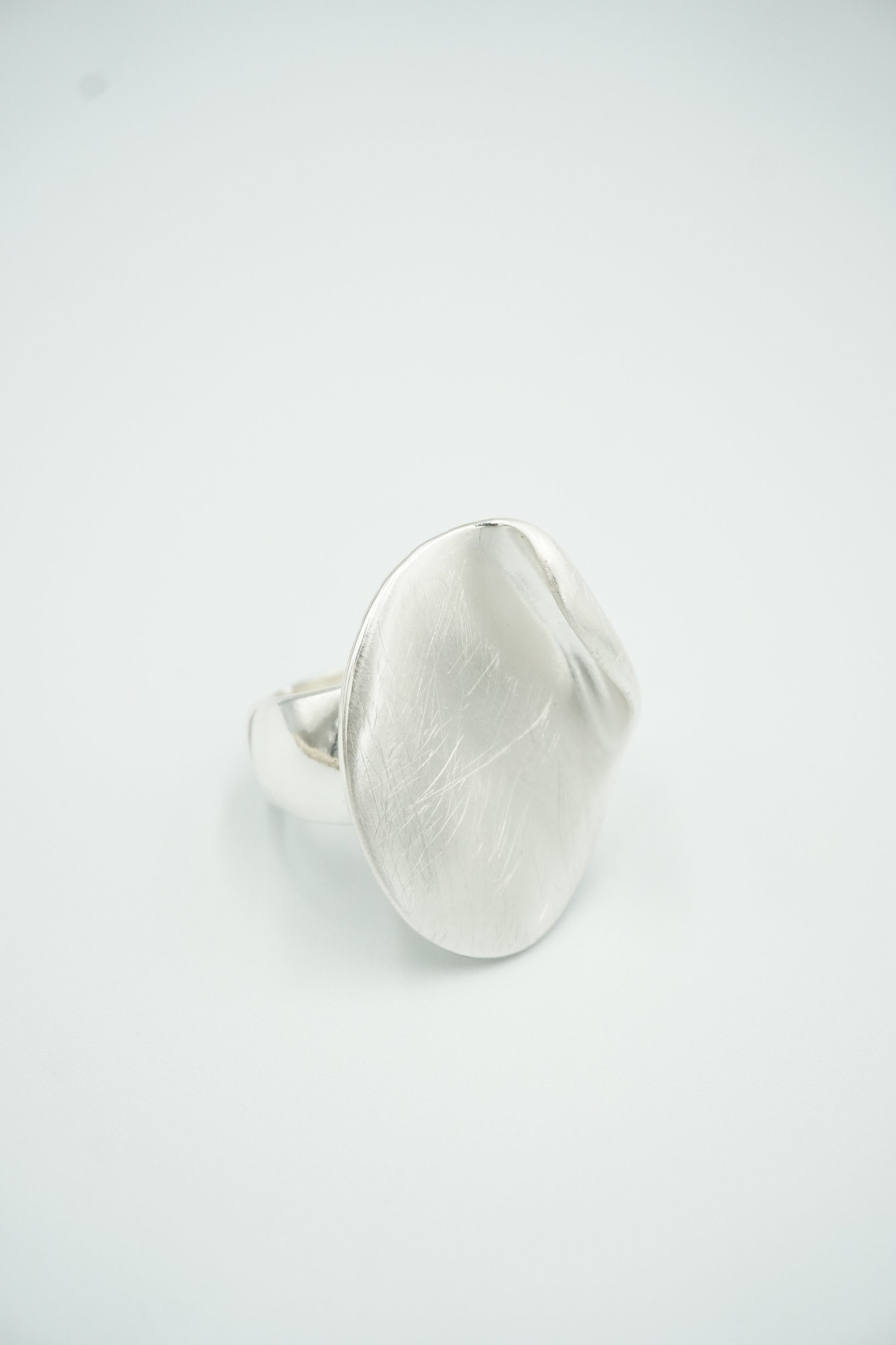 Ovális Matt Fém Vastag Gyűrű - Ezüst