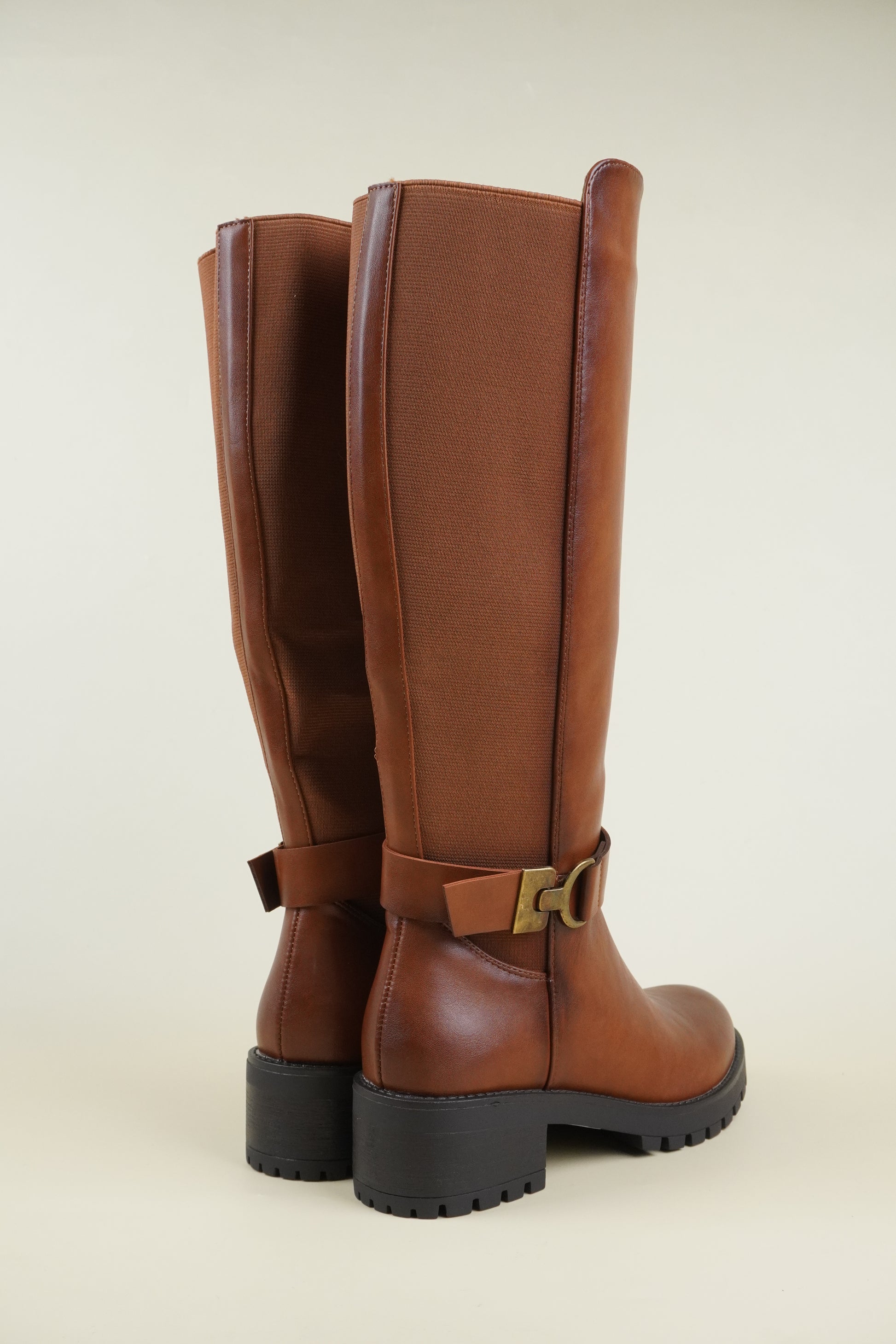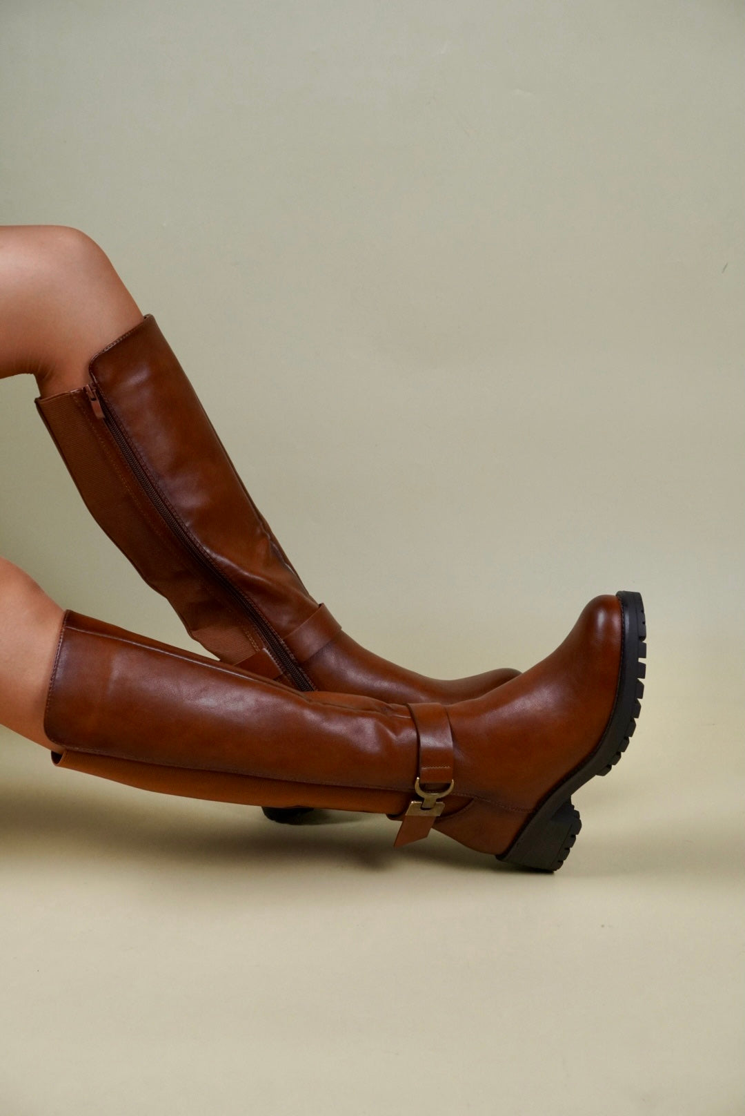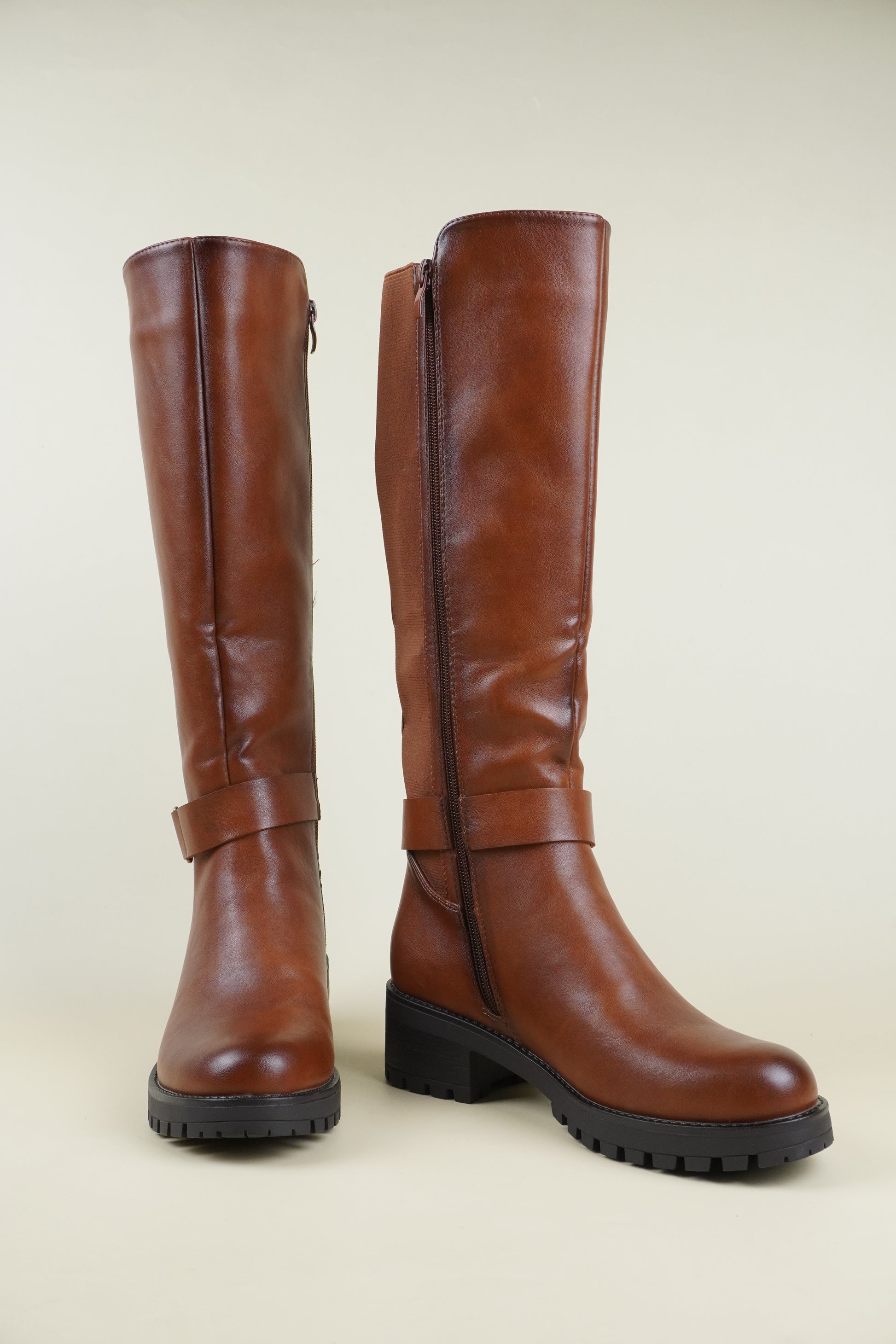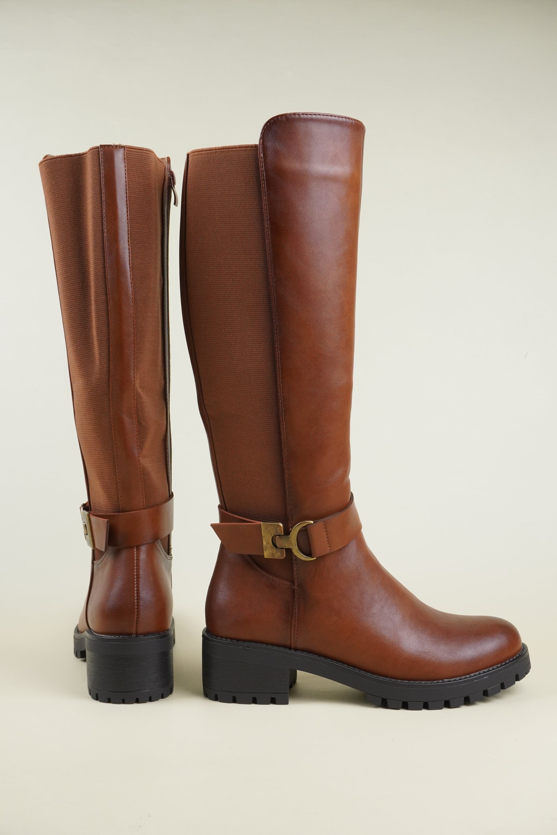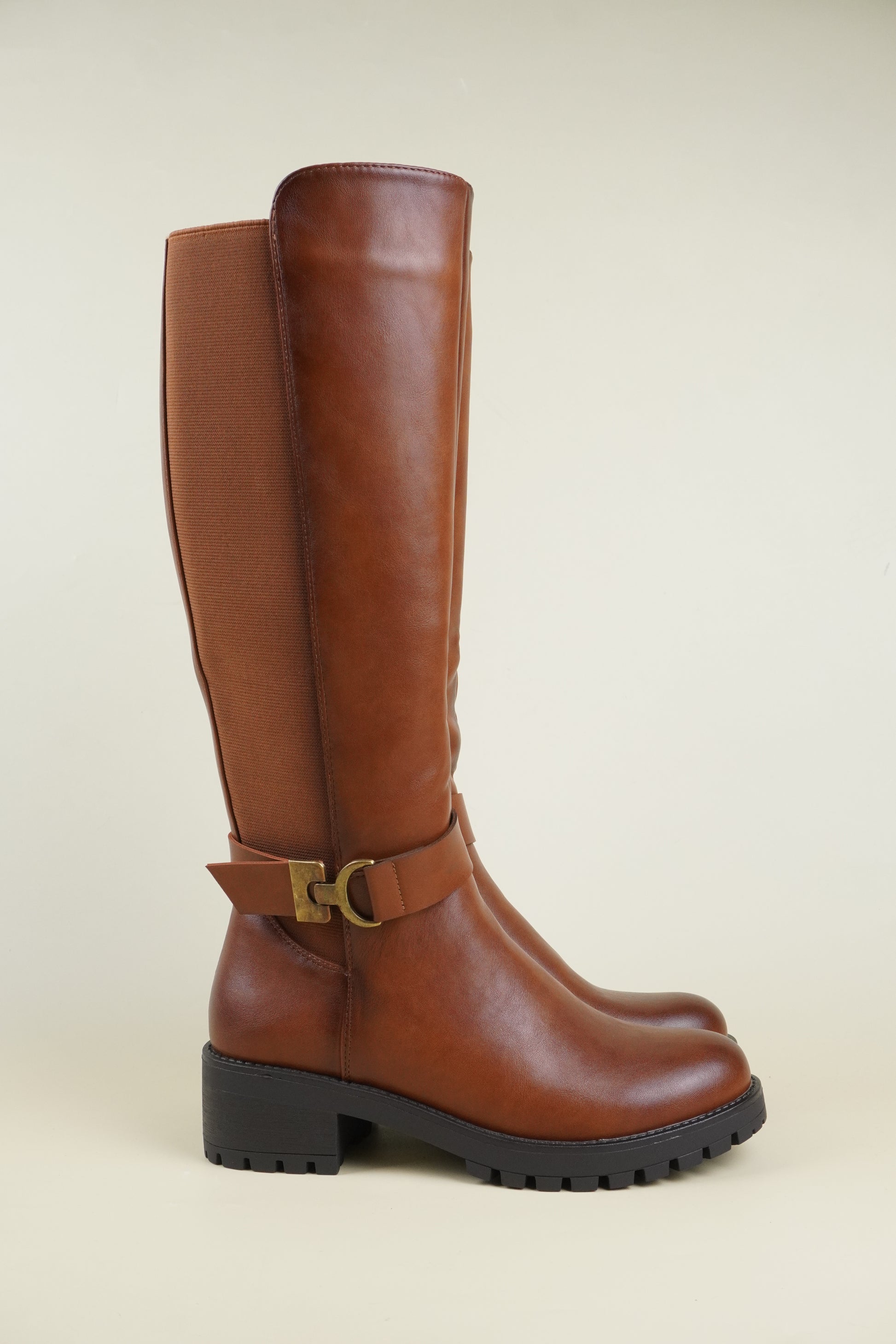 Női Térdig Érő Csizma Oldalsó Csattal – Karamellbarna