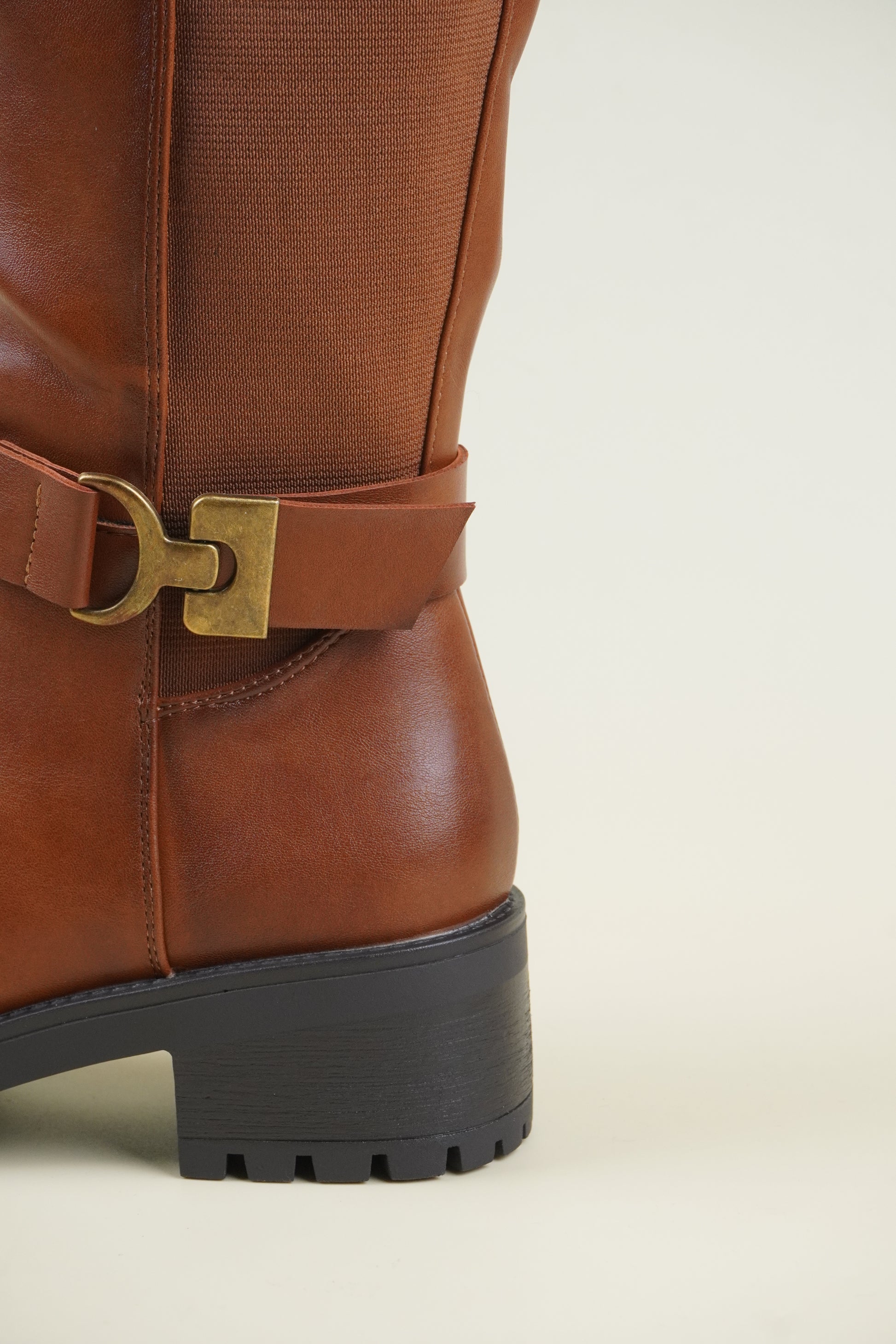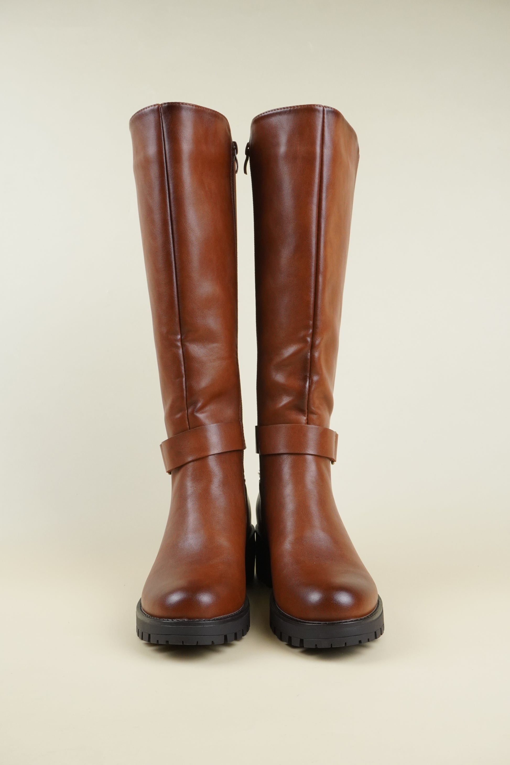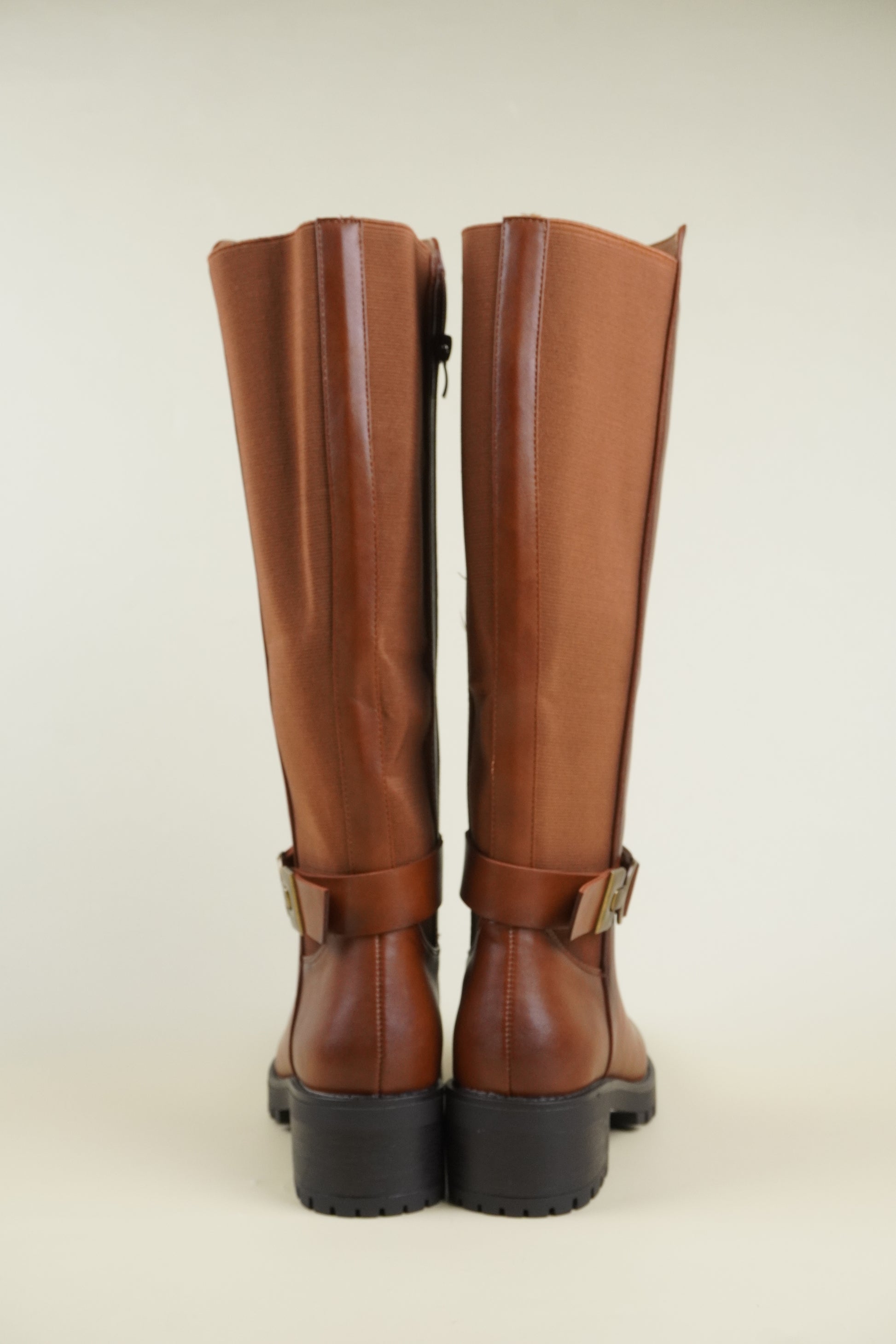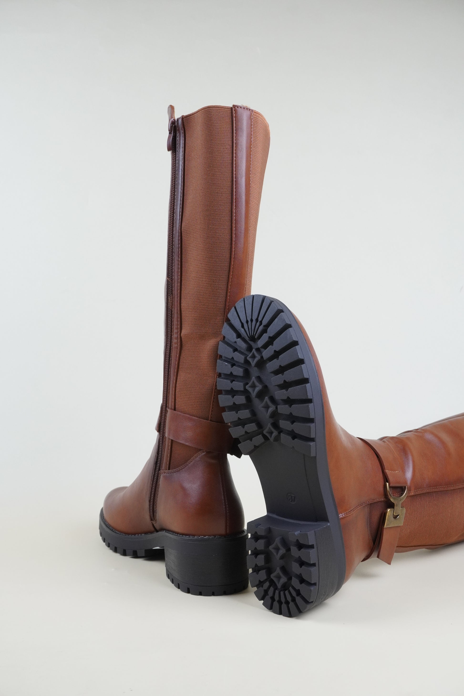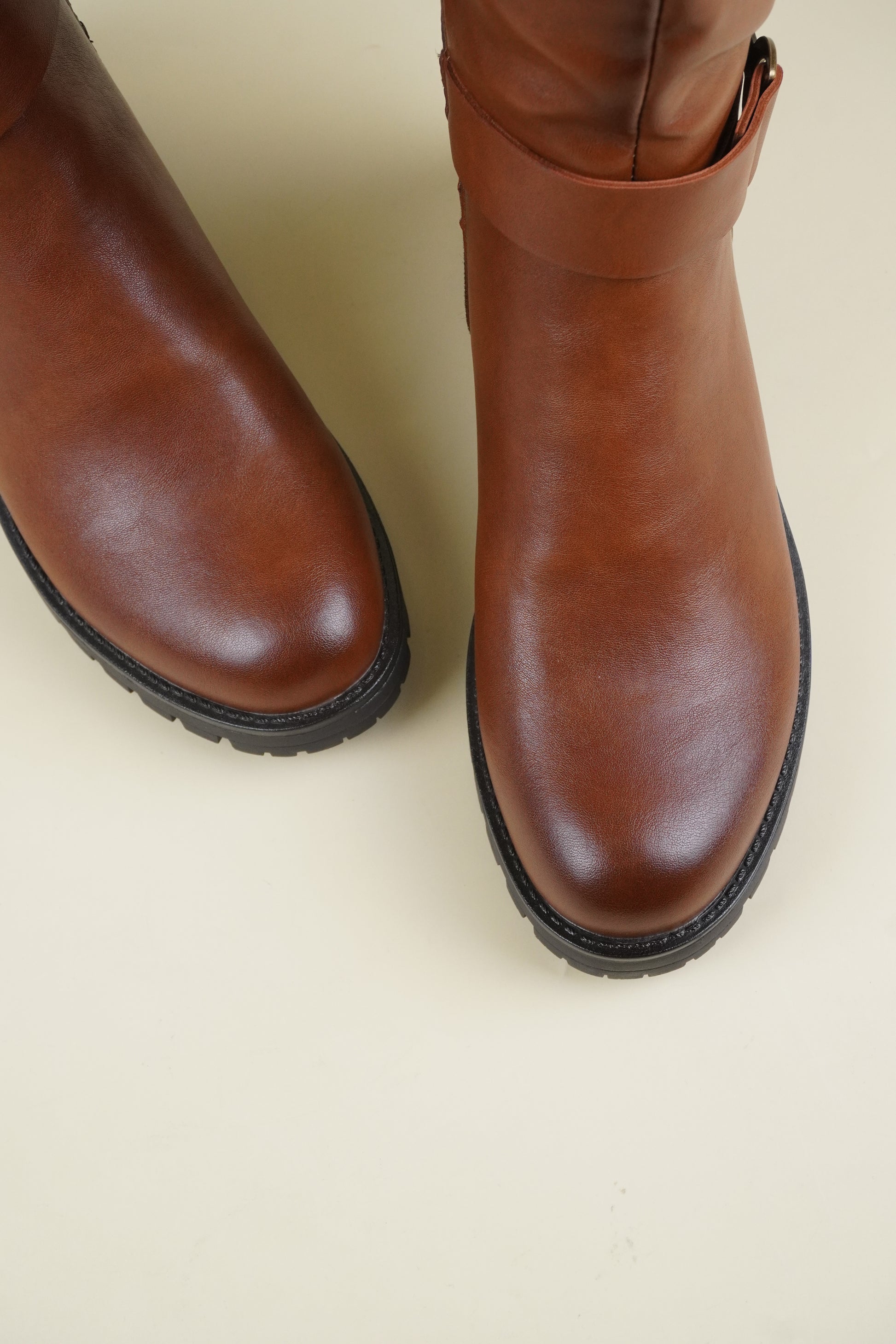 Női Térdig Érő Csizma Oldalsó Csattal – Karamellbarna
